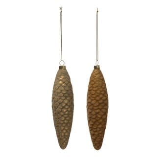 1-1/2" ROUND X 6-1/2"H FLOCKED GLASS PINECONE ORNAMENT
