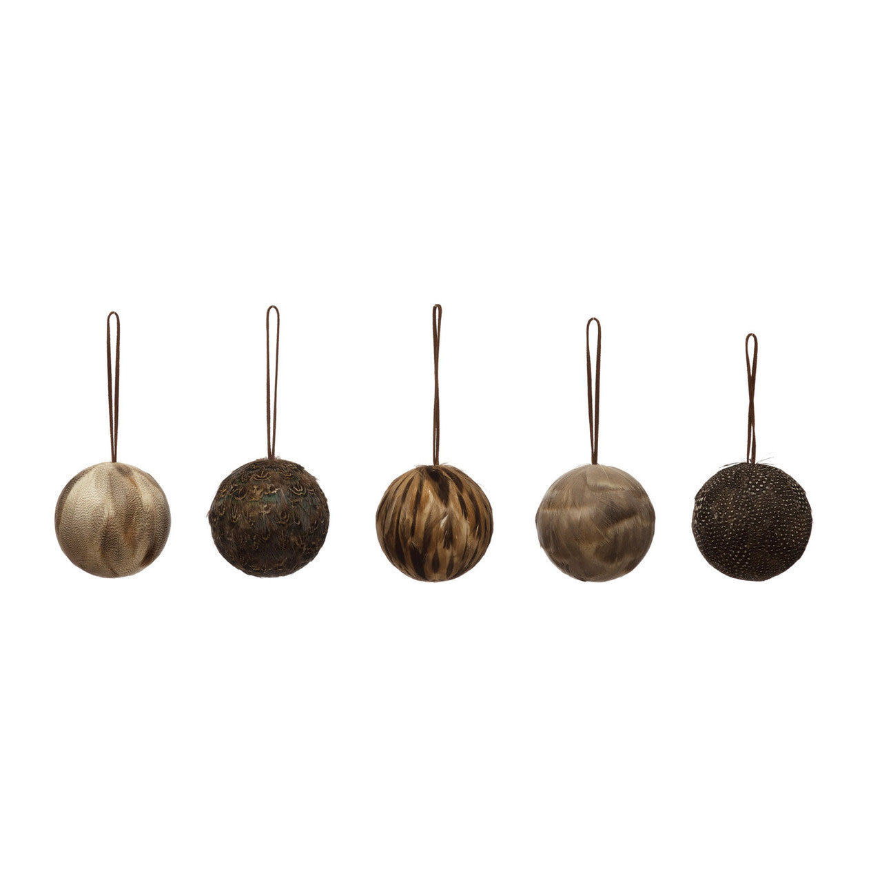 3" Round Feather Ball Ornament w/ Leather Hanger, 5 Styles