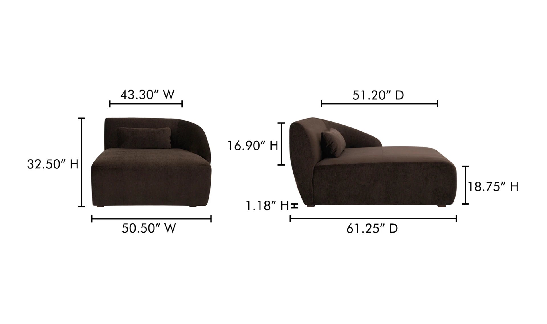 Offering a generous seat wrapped in rich, warm-toned upholstery, the Amelia right arm facing chaise allows numerous configurations to fit any interior design or spatial requirements. Its high back and sloped arm curvature combine to offer a supportive seat, inviting guests to lounge and relax. For added comfort, a lumbar cushion is perfect for posture as this piece radiates a welcoming ambiance.