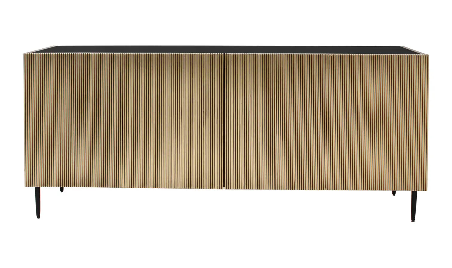 With signature art deco flair, the Brogan sideboard is ready to add some metallic magic to your space. Antique brass finished sides and doors give Brogan a look that’s decadent and refined, a bright burnished addition to your dining area. Its two doors open to reveal lots of room for all your dining accessories, while its tabletop serves as a home for your décor as well as a serving and carving station. Slender yet sturdy legs complete the look, ensuring Brogan’s status as an art deco icon as well as a space-saving storage solution.