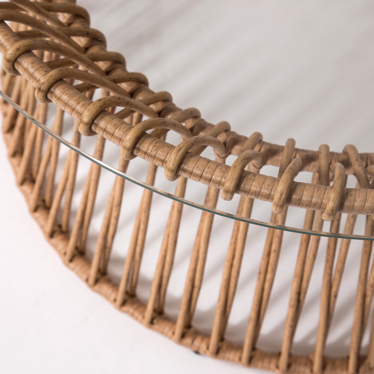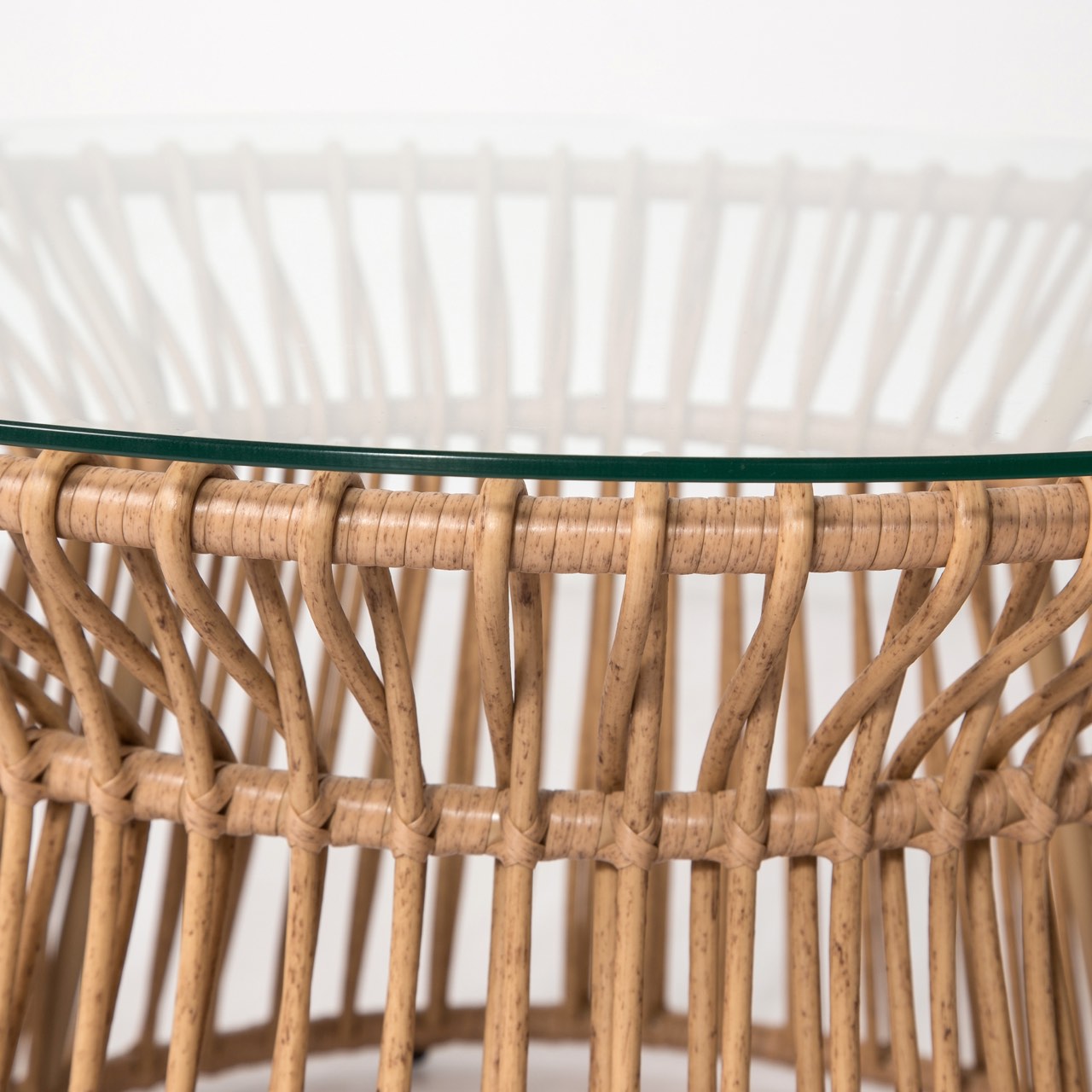 This elegant indoor/outdoor coffee table is made from gorgeous and durable woven UV-resistant resin rattan, and is finished with a tempered glass top. Perfect for every day and entertaining, it's the perfect size for smaller living rooms or patios where space should never come in the way of style.