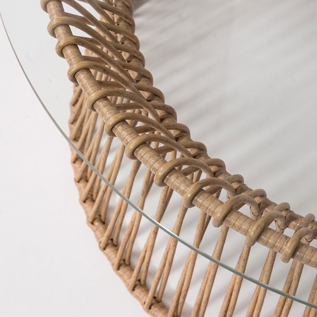 Material: Powder-Coated Iron, PE Wicker, Tempered Glass