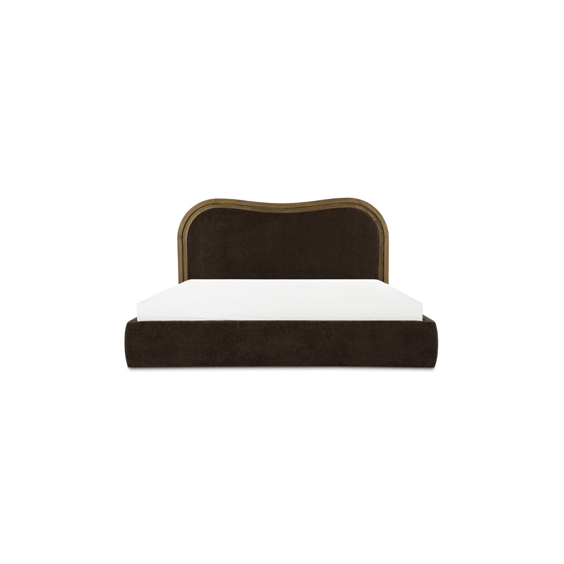 The Camilla bed is our art deco-inspired take on the wave bed. Its solid ash frame exudes warmth with its mid-tone brown finish. The thoughtfully designed upholstered foam and fiber headboard features a stepped-down or inset frame technique that skillfully creates a captivating wave effect.