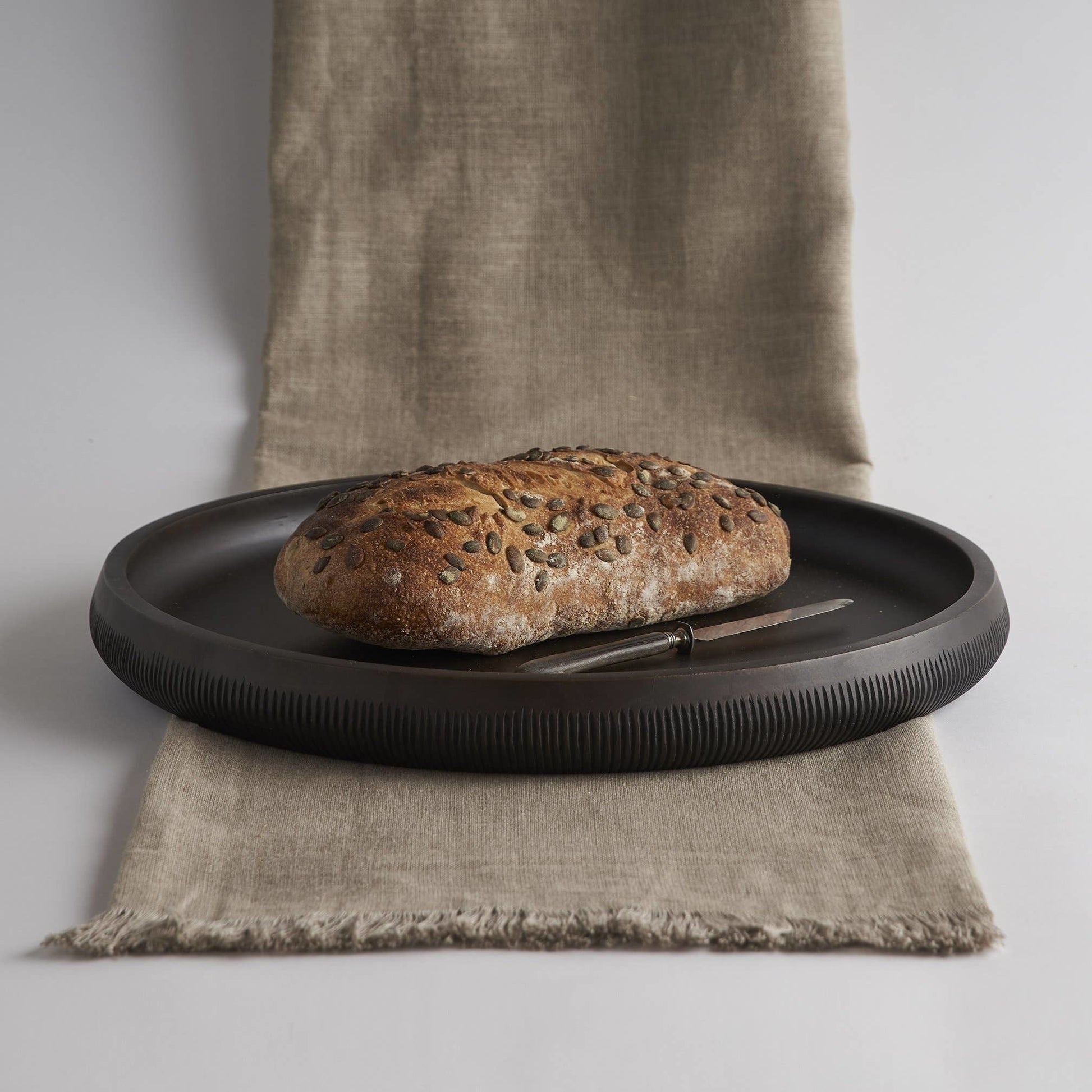 The largest tray in the chiseled leila group offers a special place to display a collection of treasures, and multitasks as a serving platter for breads, cheeses, fruits or cocktails. Its chiseled rim and generous proportions will make this piece a standout in your home. Size: 20" x 2".