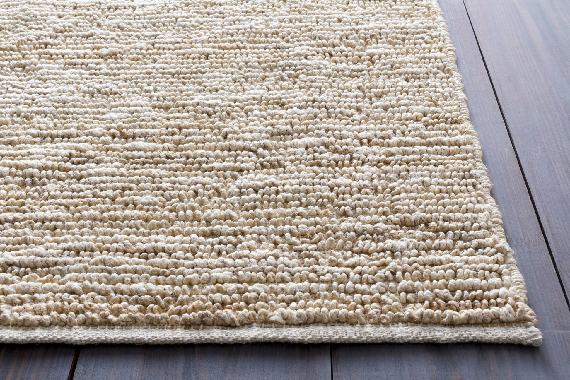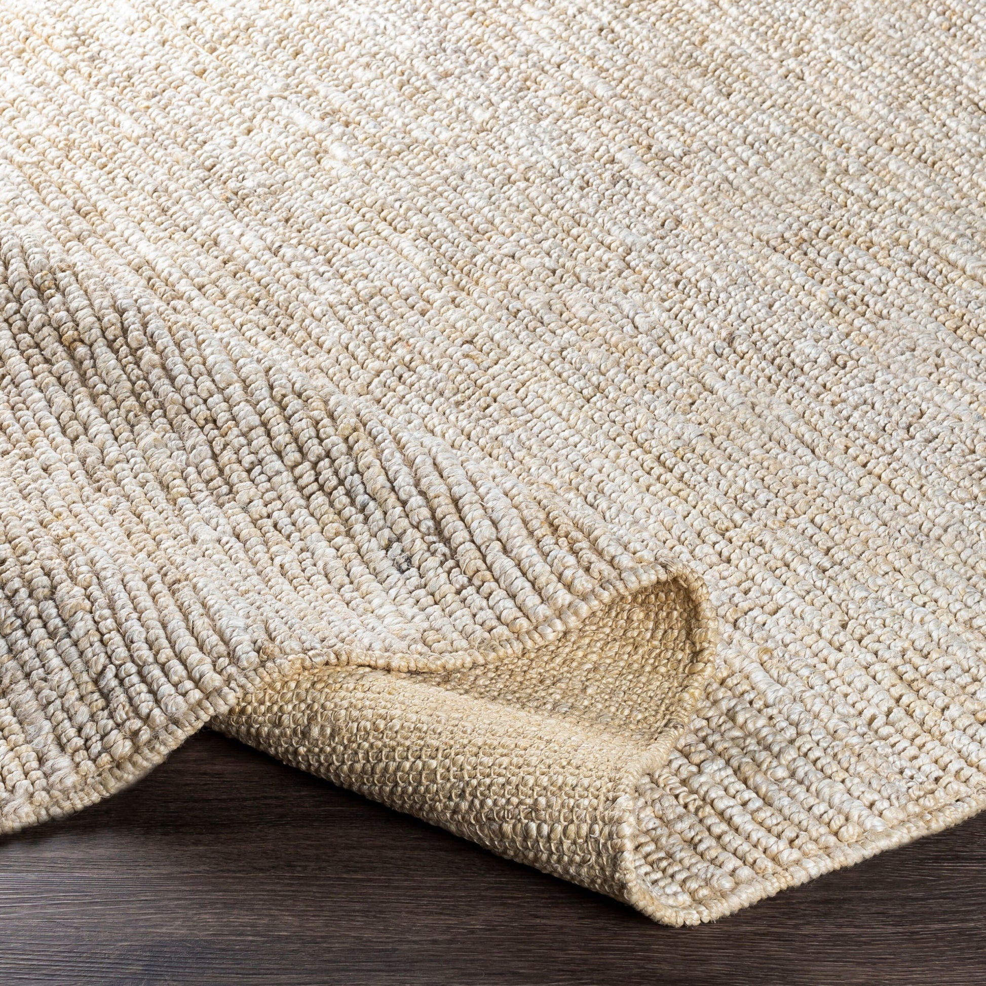 This hand-woven rug is crafted from 100% jute in a looped design with a low pile and elegant ivory color. Its natural texture adds a beautiful organic touch to your space, perfectly complementing an organic modern style with its understated charm.