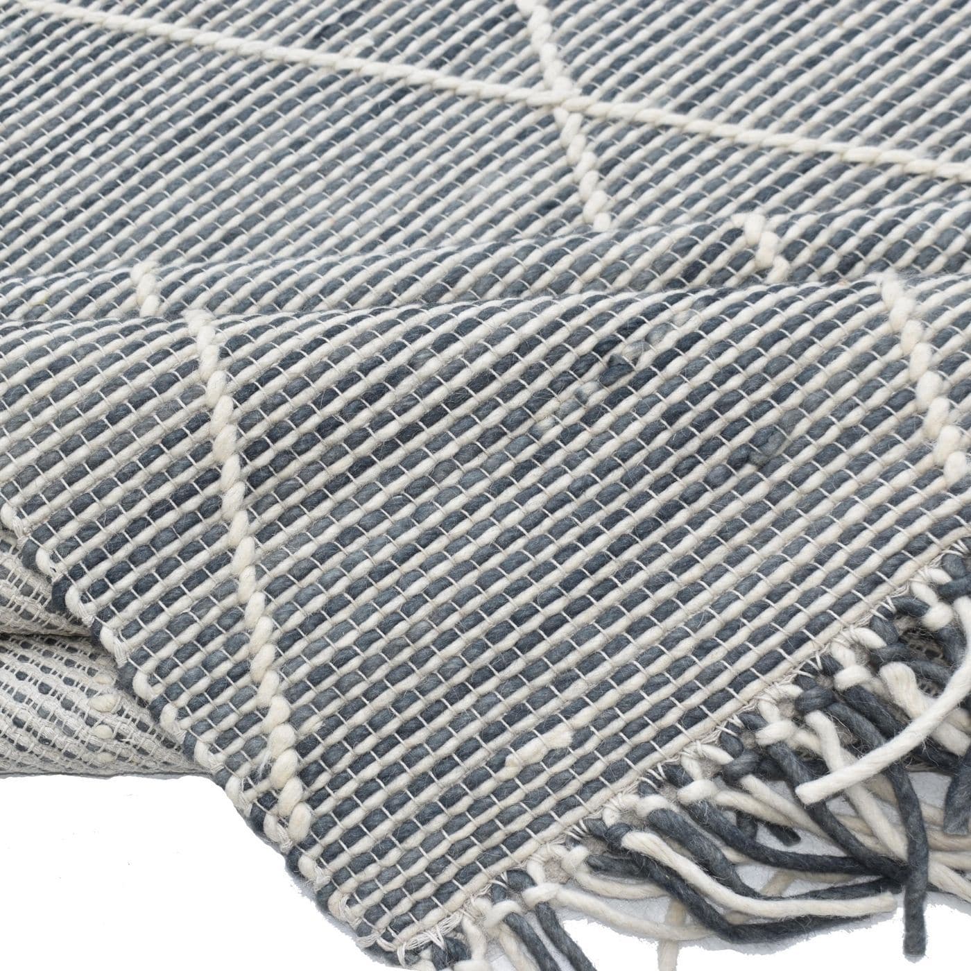 Add style, flair, and warmth to your room! This woven wool rug gives off unique boho vibes, designed by our team in-house and woven by hand by skilled artisans in India. Made from premium-grade New Zealand wool.