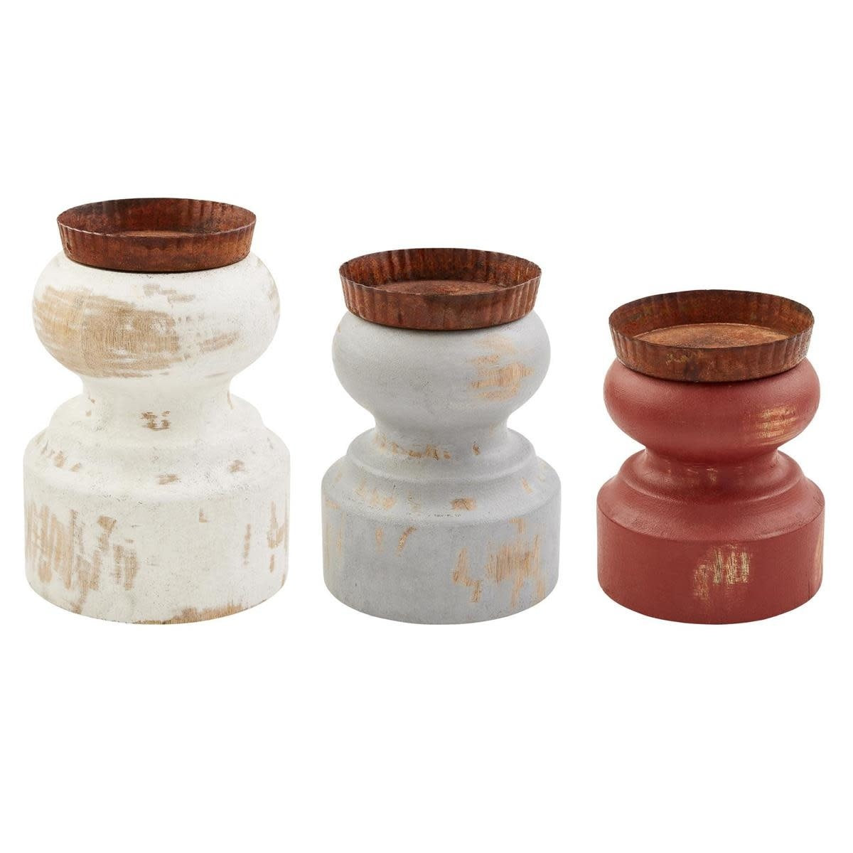 Distressed Candle Holder - White - LG