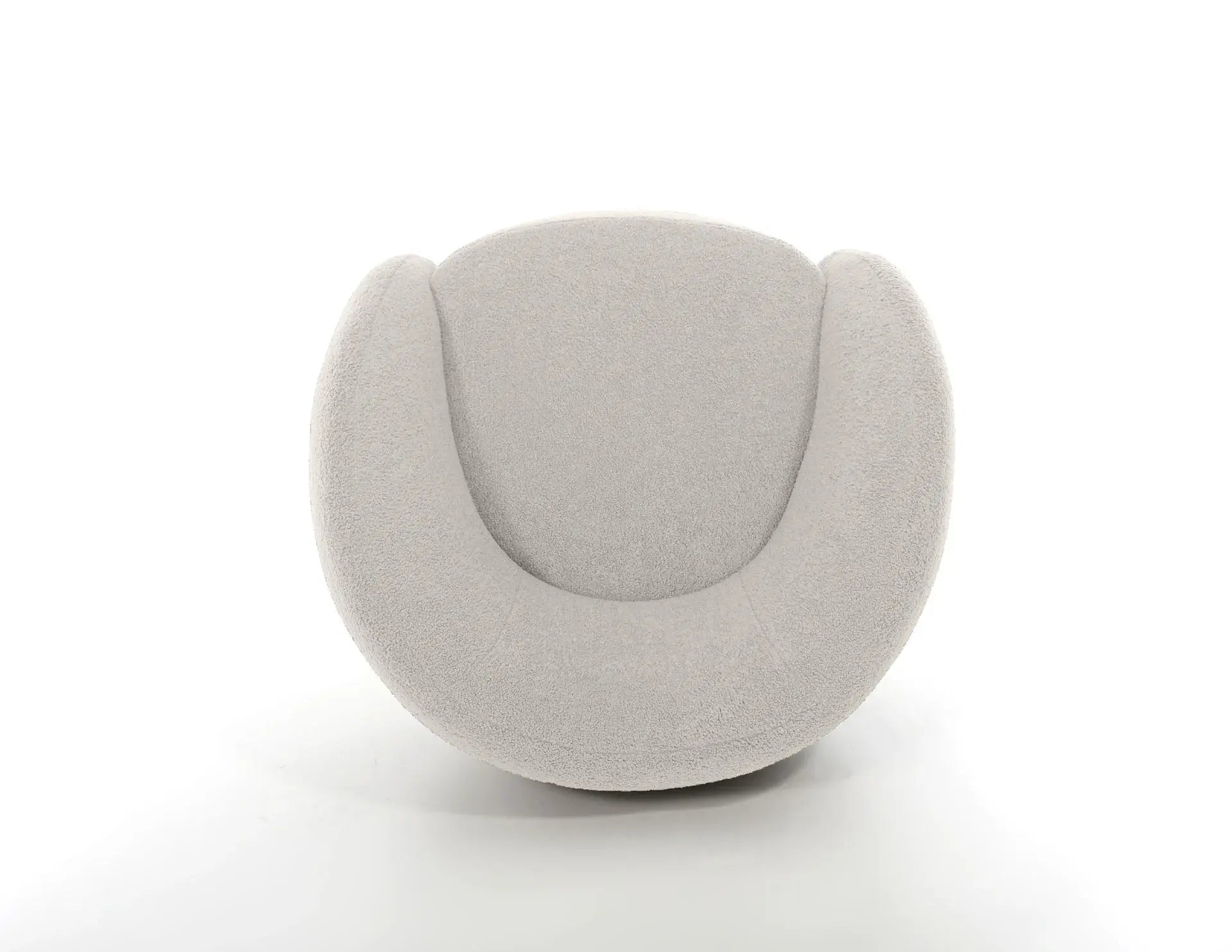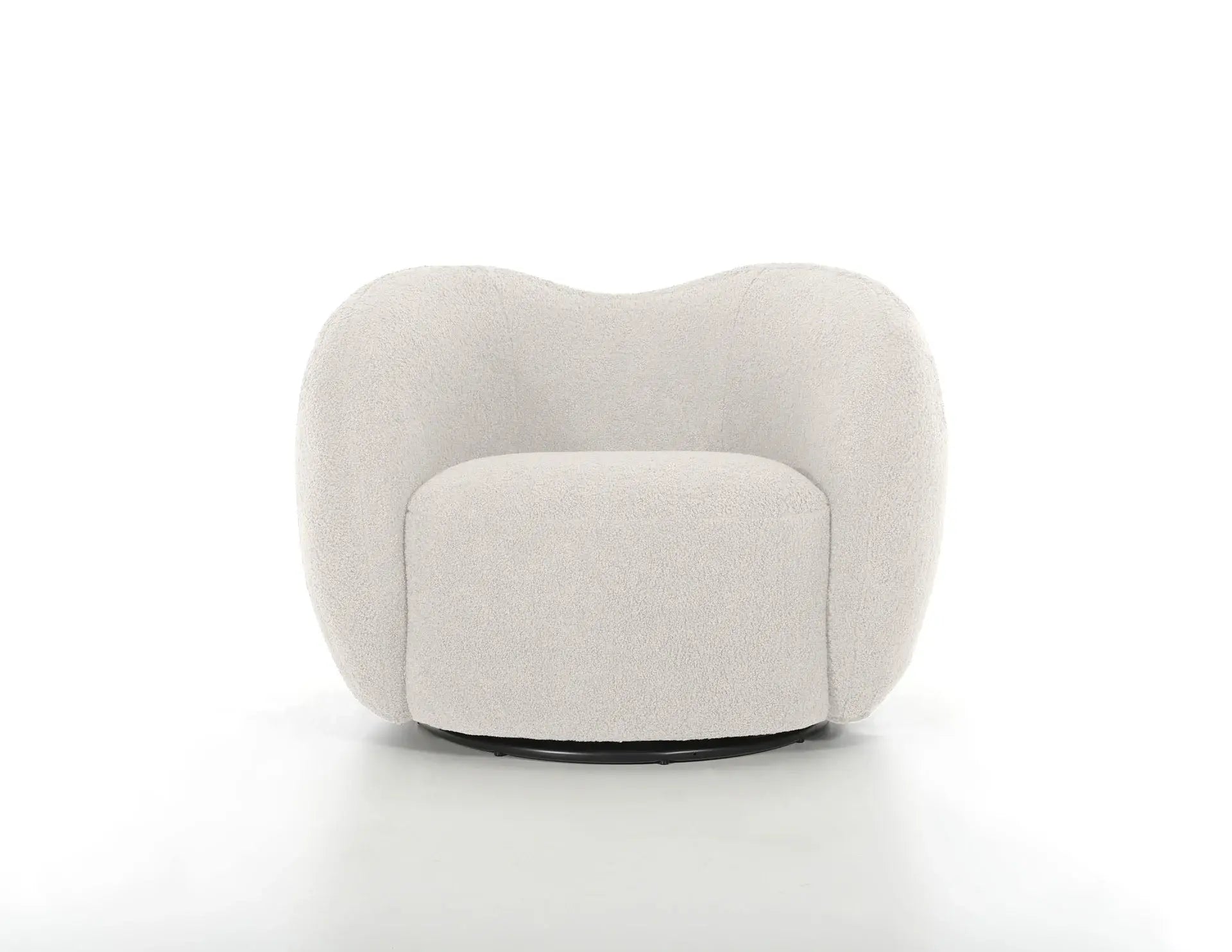 The Dune is beautifully tailored and plushly padded with a 360 degree swivel mechanism. The perfect size for a reading corner or even 2 side by side in a smaller living space. Available in three fashion forward boucle fabrics; dusty rose, army green and an elegant cream.