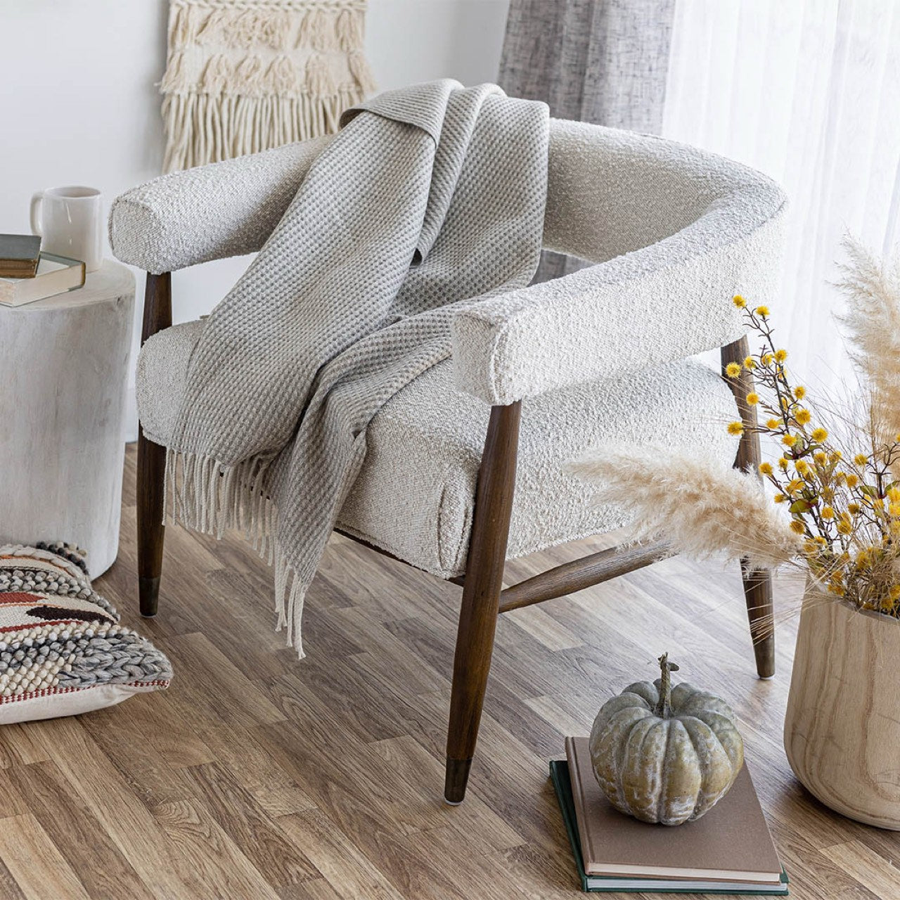With its sleek curves and luxuriously cozy boucle fabric, this chair brings a whole new level of elegance to any room. Whether you place it in a bedroom or living room, this chair is the ideal seating solution. Its carefully designed proportions ensure a comfortable and relaxing experience, making it the perfect spot to unwind and let your worries melt away. Crafted with durable poly/acrylic boucle fabric, Everest features a dramatic and elegant black wood frame, creating a seamless blend of contemporary flair and timeless charm.