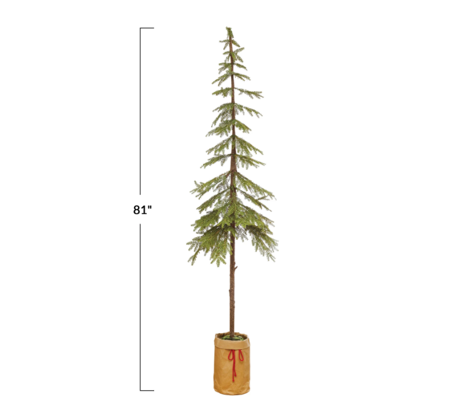 FAUX POLE PINE TREE IN PAPER SACK W/ RED TIE, 81"H