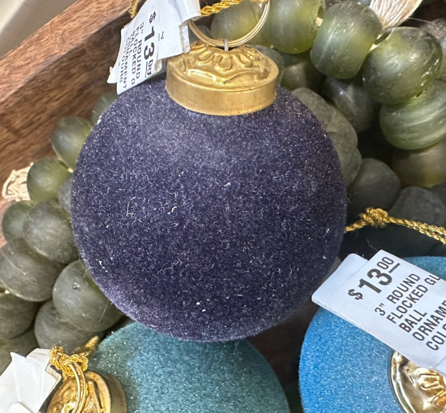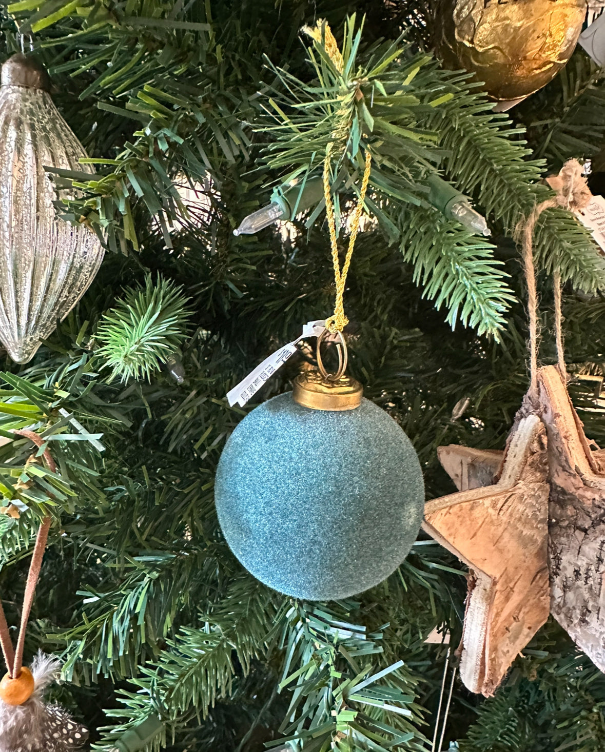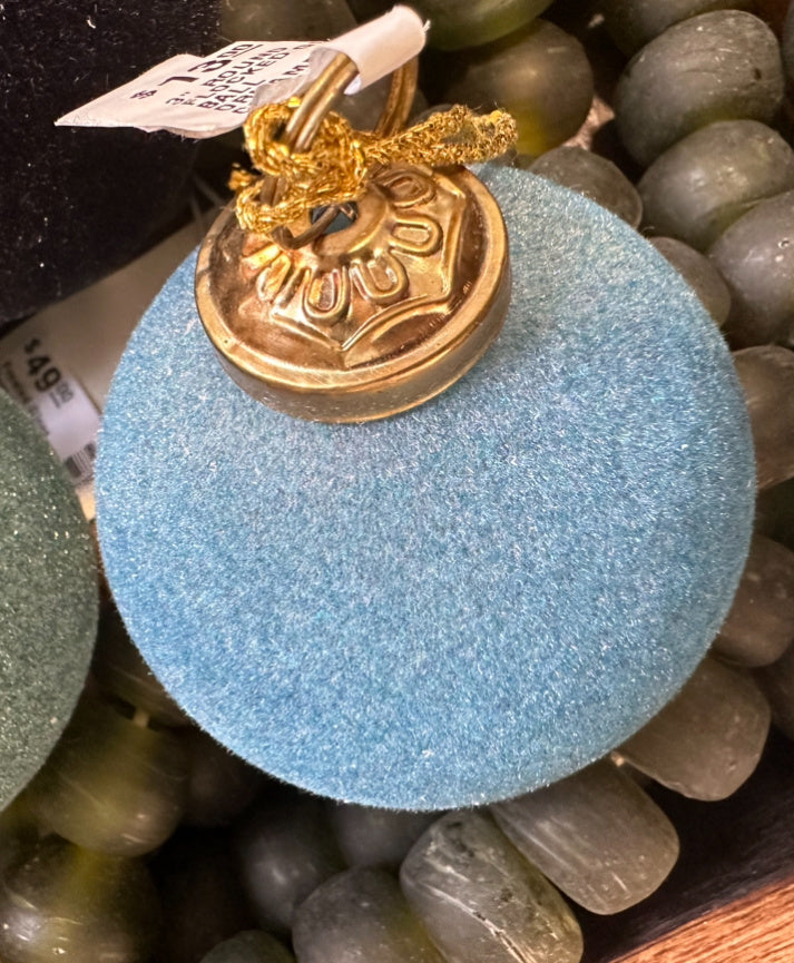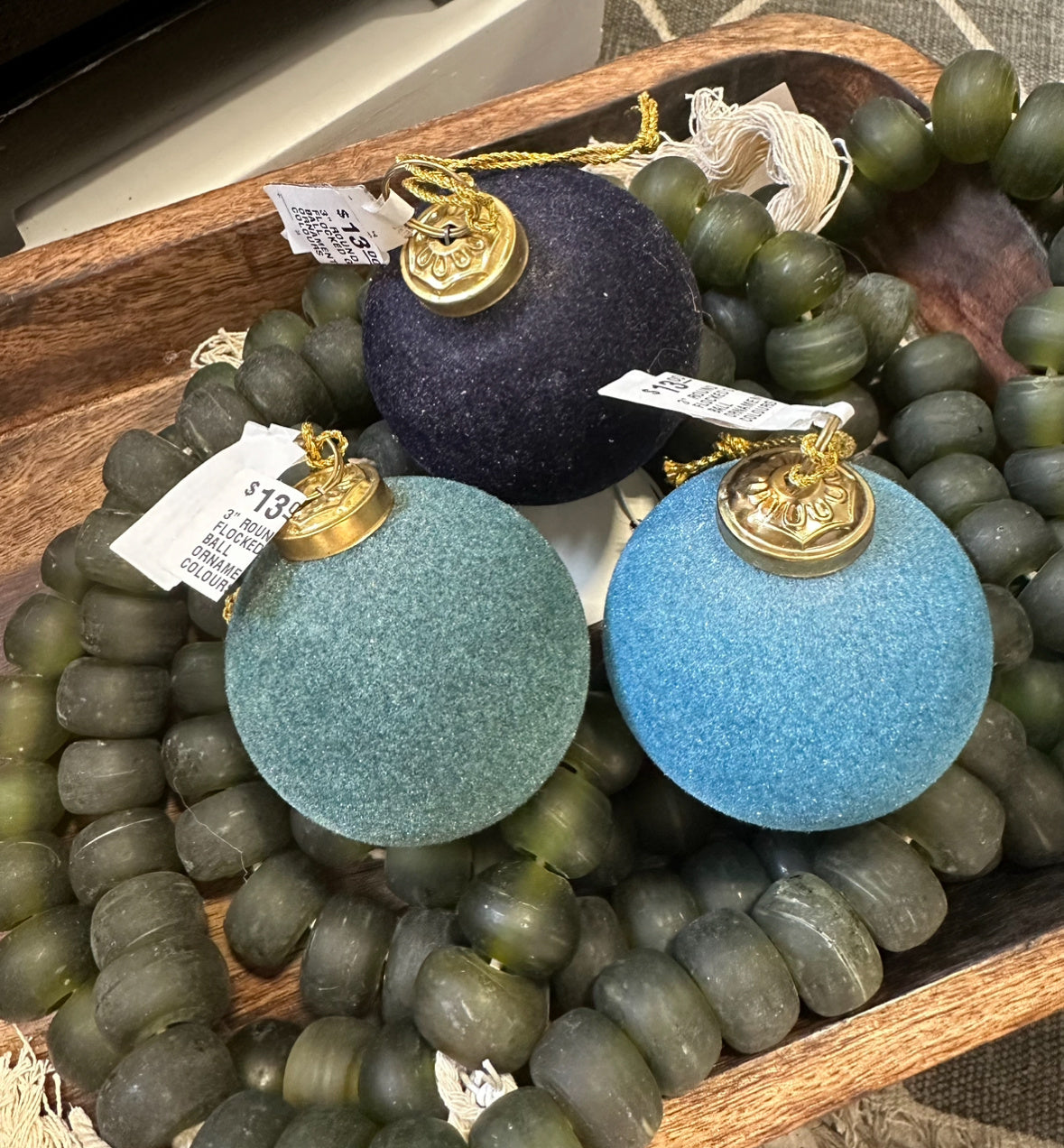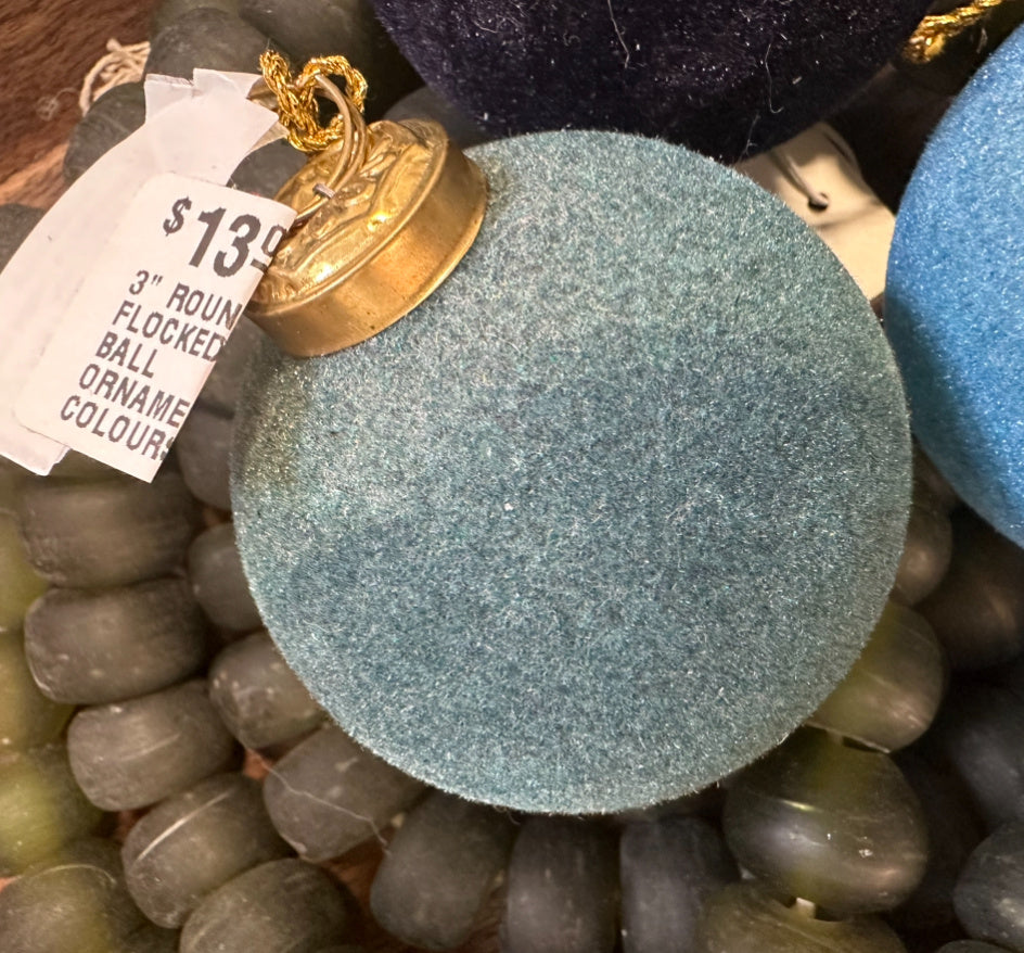 Flocked Glass Ball Ornament - Blue Tones (3 Colours)