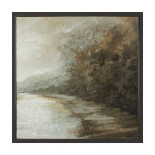 "Forest Edge I" by Mercana Studio is a captivating landscape showcasing an ethereal mist cloaking a serene grove. Crafted with hand-embellished techniques, the artwork features rich textures that invigorate the soft interplay of earthy browns and gentle grays. Encased in a sleek black frame, its minimalist elegance perfectly complements the artwork's tranquil inspiration.