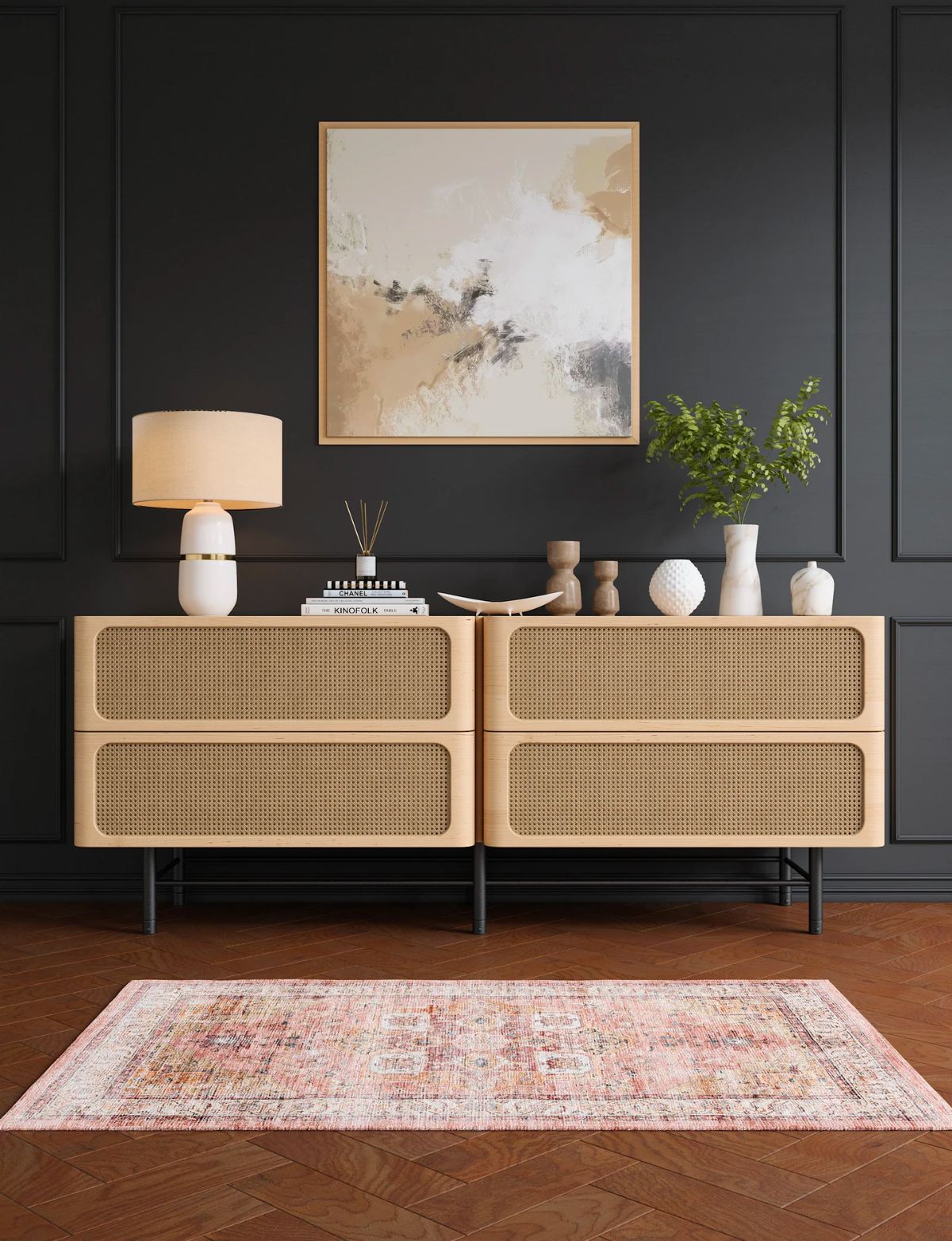 Frema is a beautiful centerpiece with a Persian-inspired design and a range of sumptuous, saturated colors such as orange, coral and light beige. It effortlessly pairs with many different rug pads, making it a versatile choice for any room. The Frema collection offers two options: machine washable rugs or premium linen rugs that are easy to clean (although not suitable for machine washing).