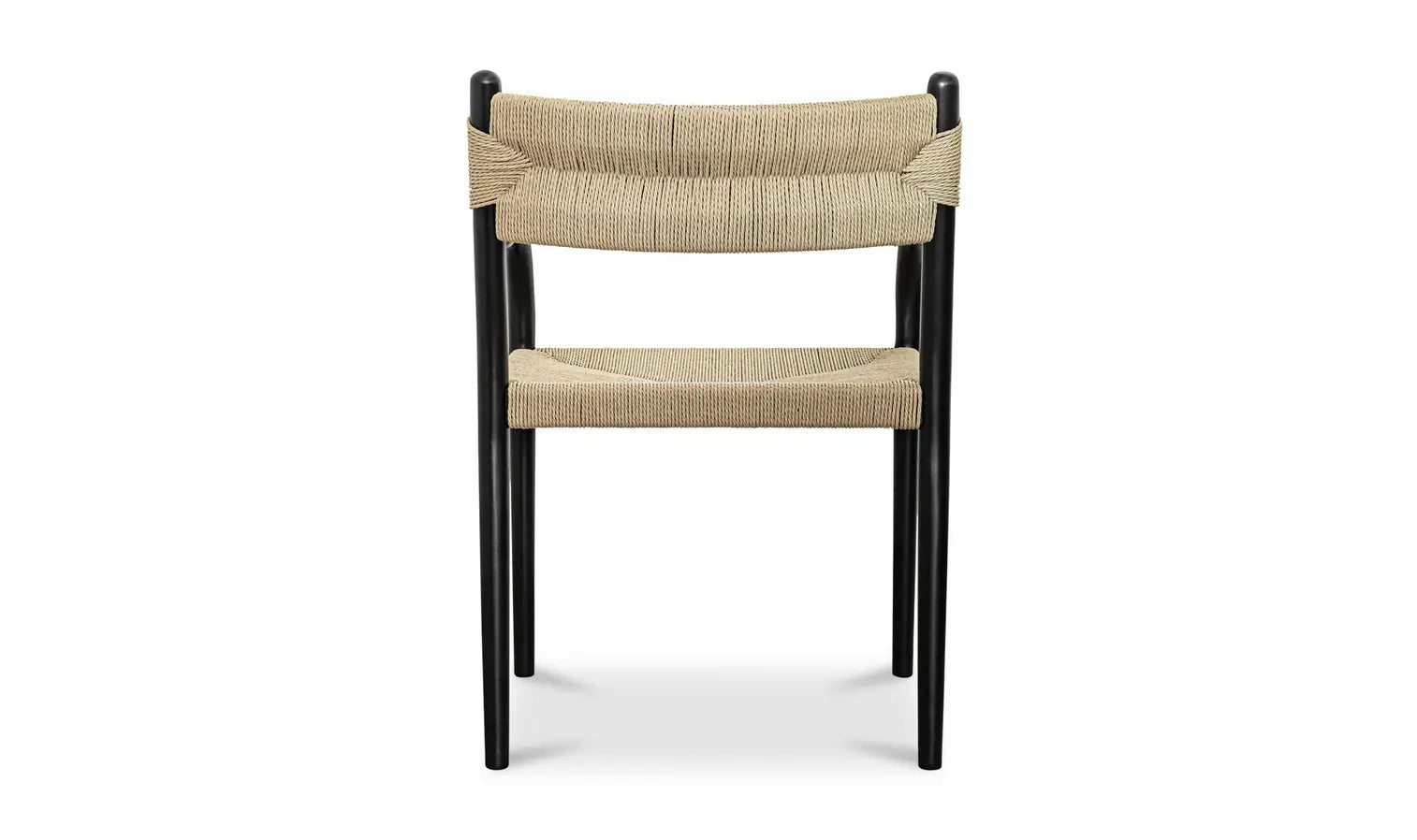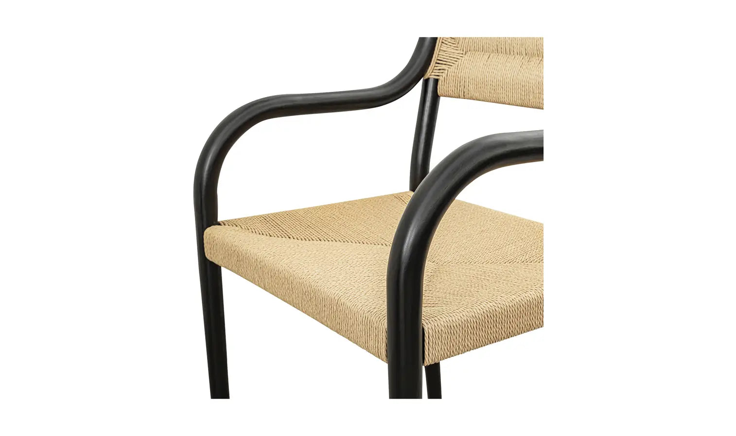 The Kenny dining chair offers a sleek, elevated design with elegantly curved armrests, a beech wood frame, and a clean, stretcher-free base. The seat and back are made from paper rope in an envelope weave, adding a rustic touch that contrasts beautifully with the modern silhouette, combining natural textures and contemporary design.