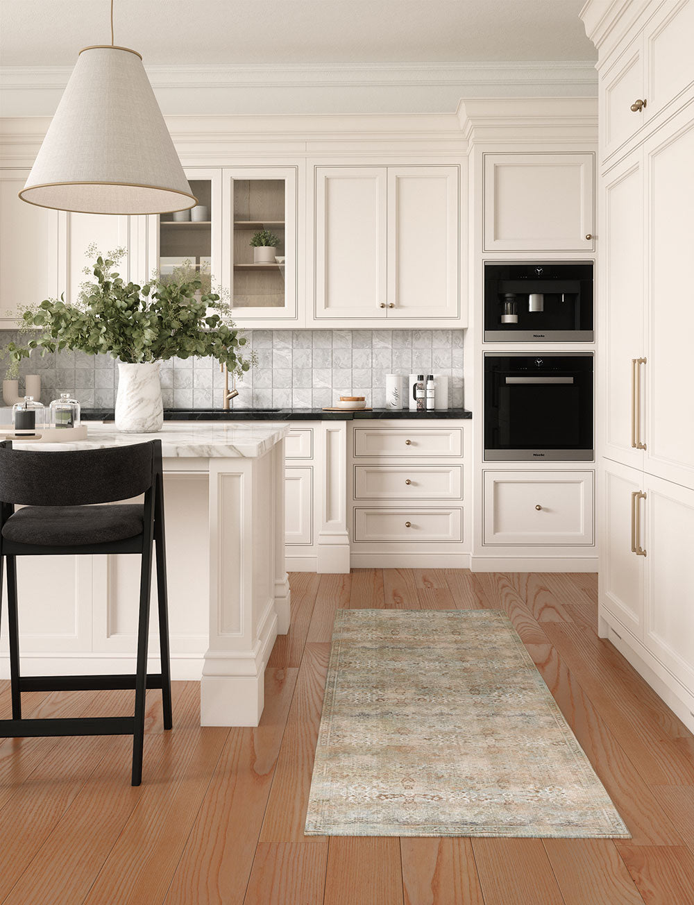 Kissara is a beautiful centerpiece with a persian floral design with a stunning color mix of beige and light blue. It effortlessly pairs with many different rug pads, making it a versatile choice for any room. The Kissara collection offers two options: machine washable rugs or premium linen rugs that are easy to clean (although not suitable for machine washing).