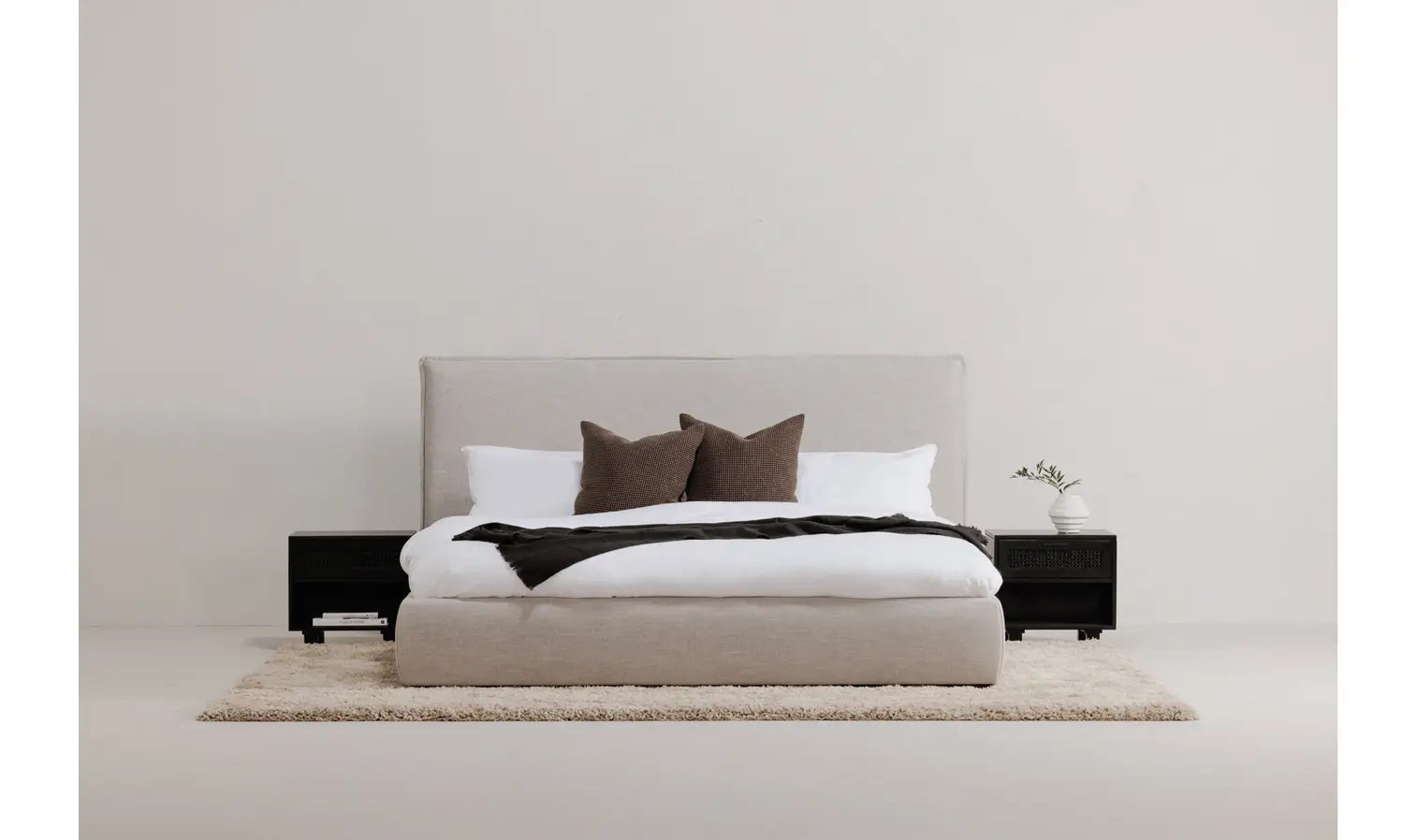 Upholstered from a soft, linen blend fabric, the Luzon bed is relaxed and welcoming. Its padded headboard and solid pine and engineered wood frame make it comfy and reliable, while its timeless design and neutral tone showcase a classic, practical look.