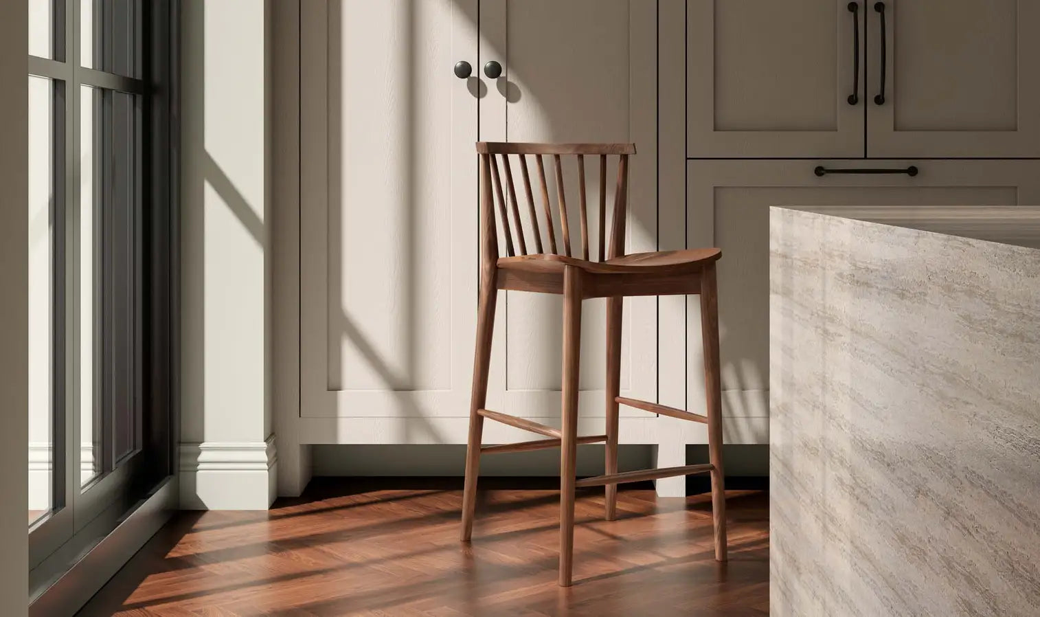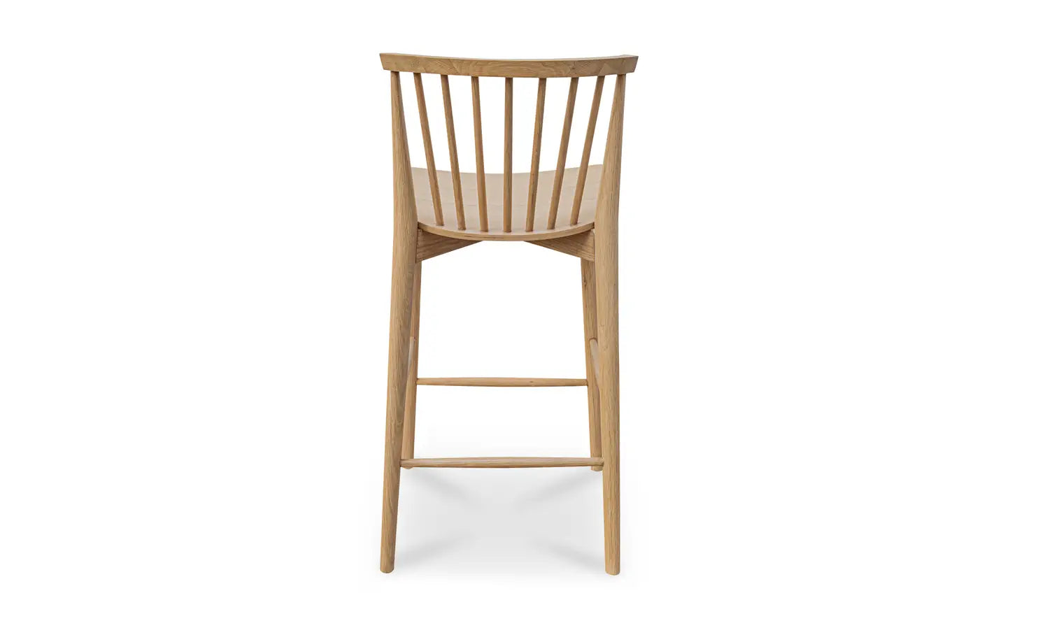 Crafted from solid oak, the Marly counter stool exudes warmth and character. This spindle-back chair's graceful silhouette offers visual intrigue and ergonomic support, while the smaller scale ensures versatility. Sold in sets of two.