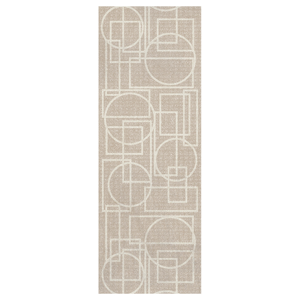 Noor is a contemporary area rug that blends clean geometry with subtle sophistication. Featuring overlapping circles and rectangles in a sleek neutral beige palette, this modern rug brings balance and visual interest to any space—whether it's a minimalist living room, a stylish bedroom, or a modern office. The Noor rug is a perfect fit for fans of Scandinavian, mid-century, or abstract interior styles. Choose from machine washable options for low-maintenance living or premium linen rugs for a more elevated, textural look (note: linen versions are not machine washable). Designed to pair effortlessly with most rug pads for added comfort and grip.