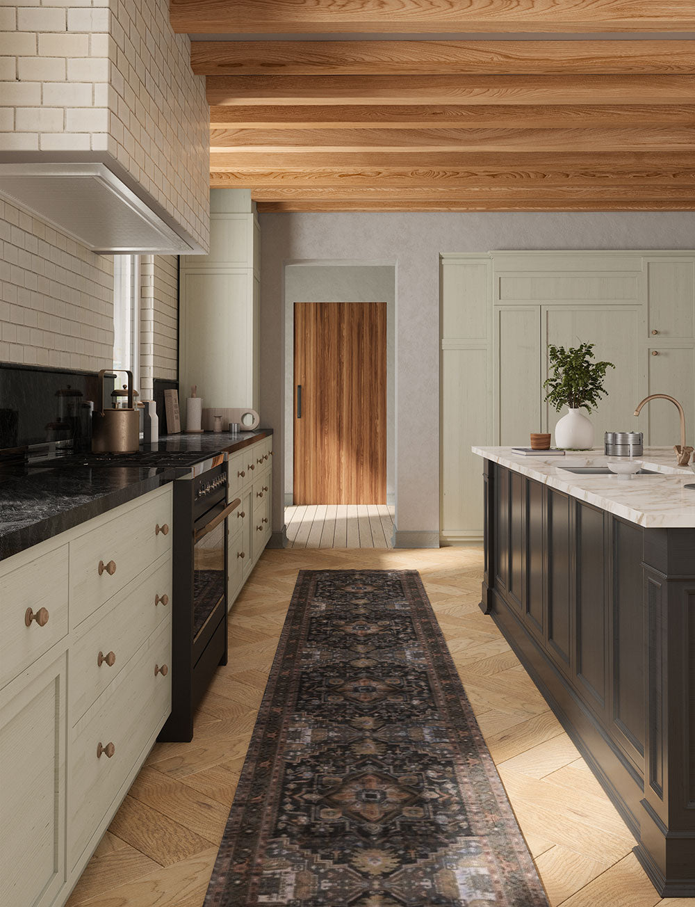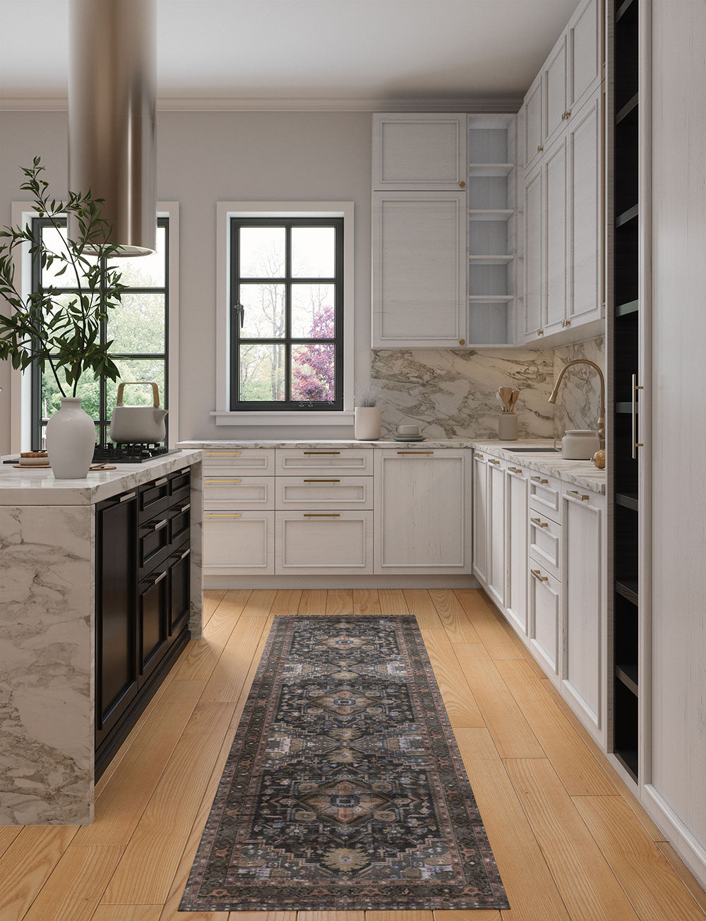 Ozana is a beautiful centerpiece with a Persian design with a simple color mix of black, brown, yellow gold and coral. It effortlessly pairs with many different rug pads, making it a versatile choice for any room. The Ozana collection offers two options: machine washable rugs or premium linen rugs that are easy to clean (although not suitable for machine washing).