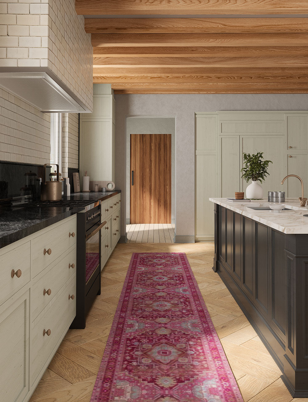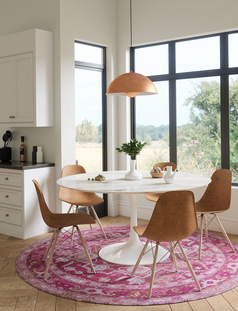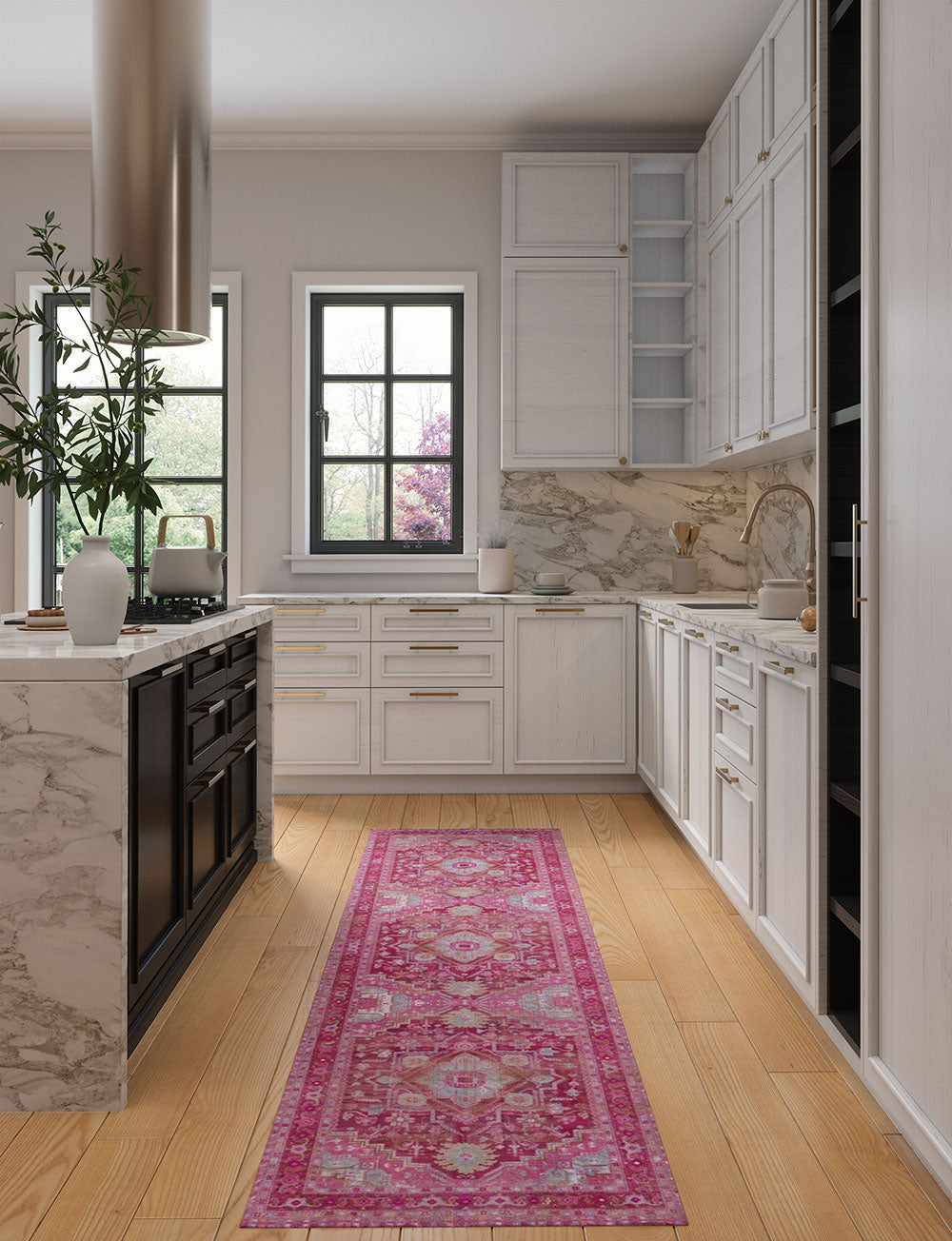 Ozana is a beautiful centerpiece with a Persian design with a simple color mix of pink, burgundy, blue, dark brown and light green. It effortlessly pairs with many different rug pads, making it a versatile choice for any room. The Ozana collection offers two options: machine washable rugs or premium linen rugs that are easy to clean (although not suitable for machine washing).