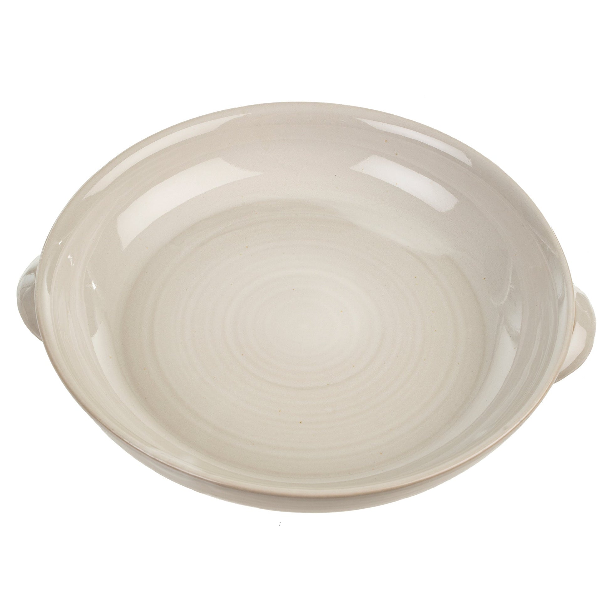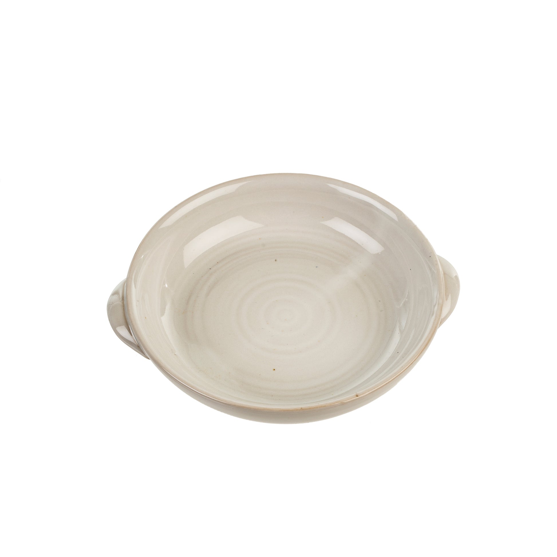 A round, off-white ceramic platter available in three sizes—perfect for serving dips, snacks, or small bites with simple, elegant style.