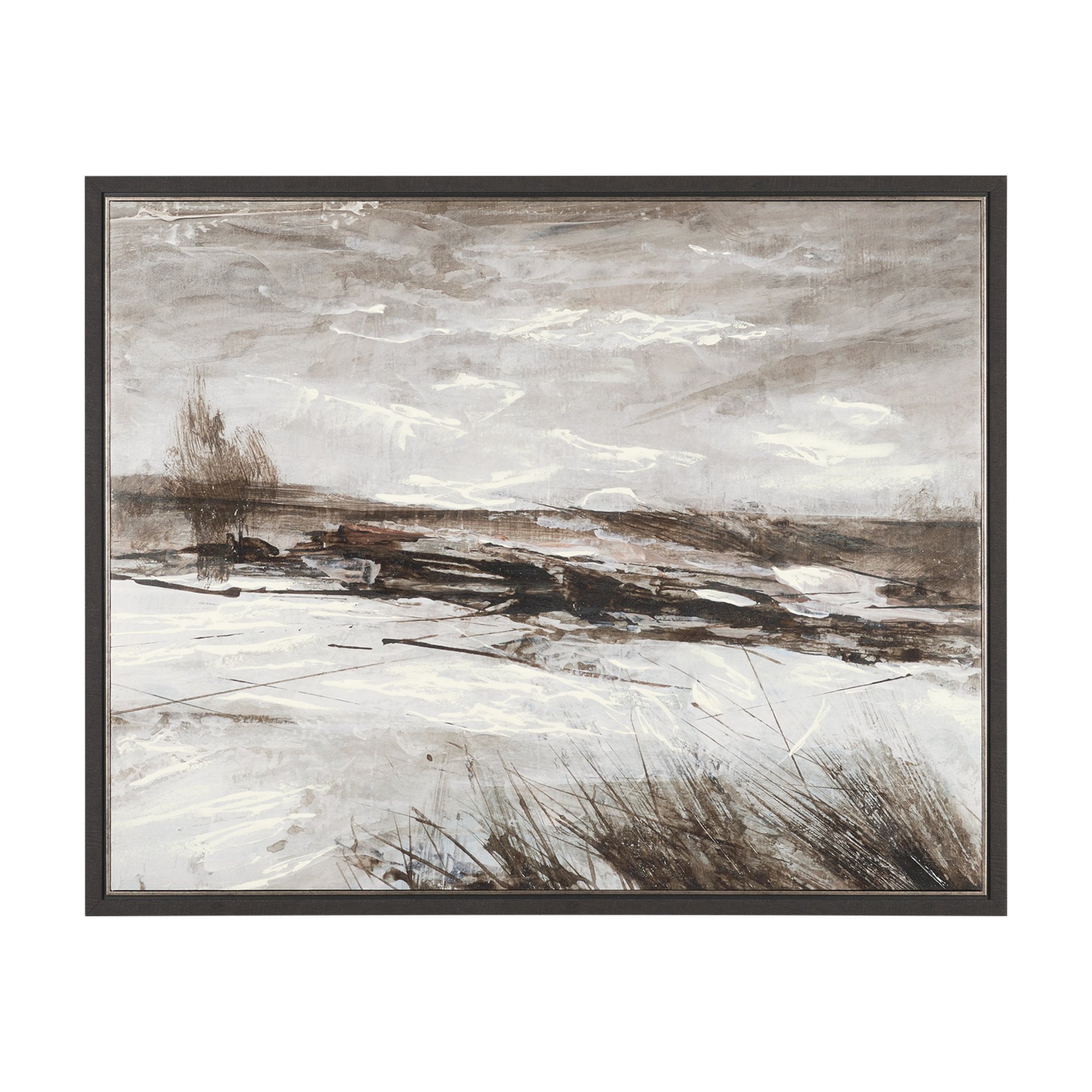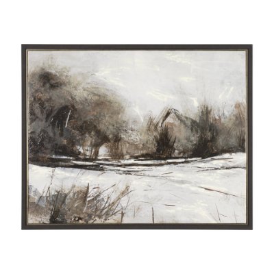 "Quiet Horizons I" by Mercana Studio is a breathtaking depiction of a tranquil winter landscape, masterfully captured on hand-embellished textured canvas. The serene palette of muted browns and soft whites evokes a sense of calm, while the intricate layering and brushwork add a touch of sophistication. Encased in a sleek, dark brown frame, this artwork seamlessly blends contemporary elegance with timeless natural beauty.