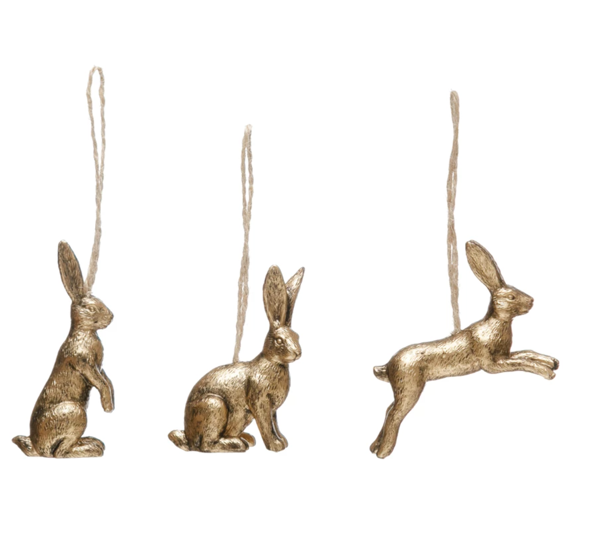 RESIN RABBIT ORNAMENT, GOLD FINISH, 3 STYLES