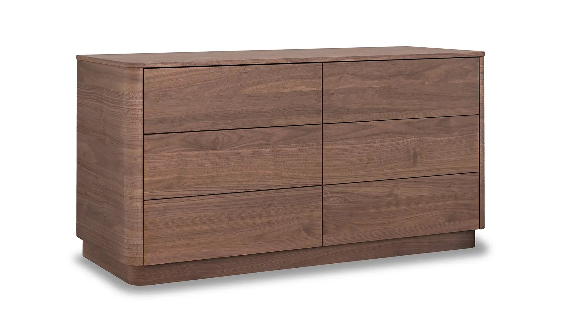 Natural allure meets minimalist design. The Round Off dresser celebrates the captivating pale tones of natural wood grain, seamlessly integrated into a soothing and design, embracing natural beauty and character. This dresser boasts gently rounded corners and six smoothly gliding drawers that reveal generous storage space while embracing oak's natural beauty and character.