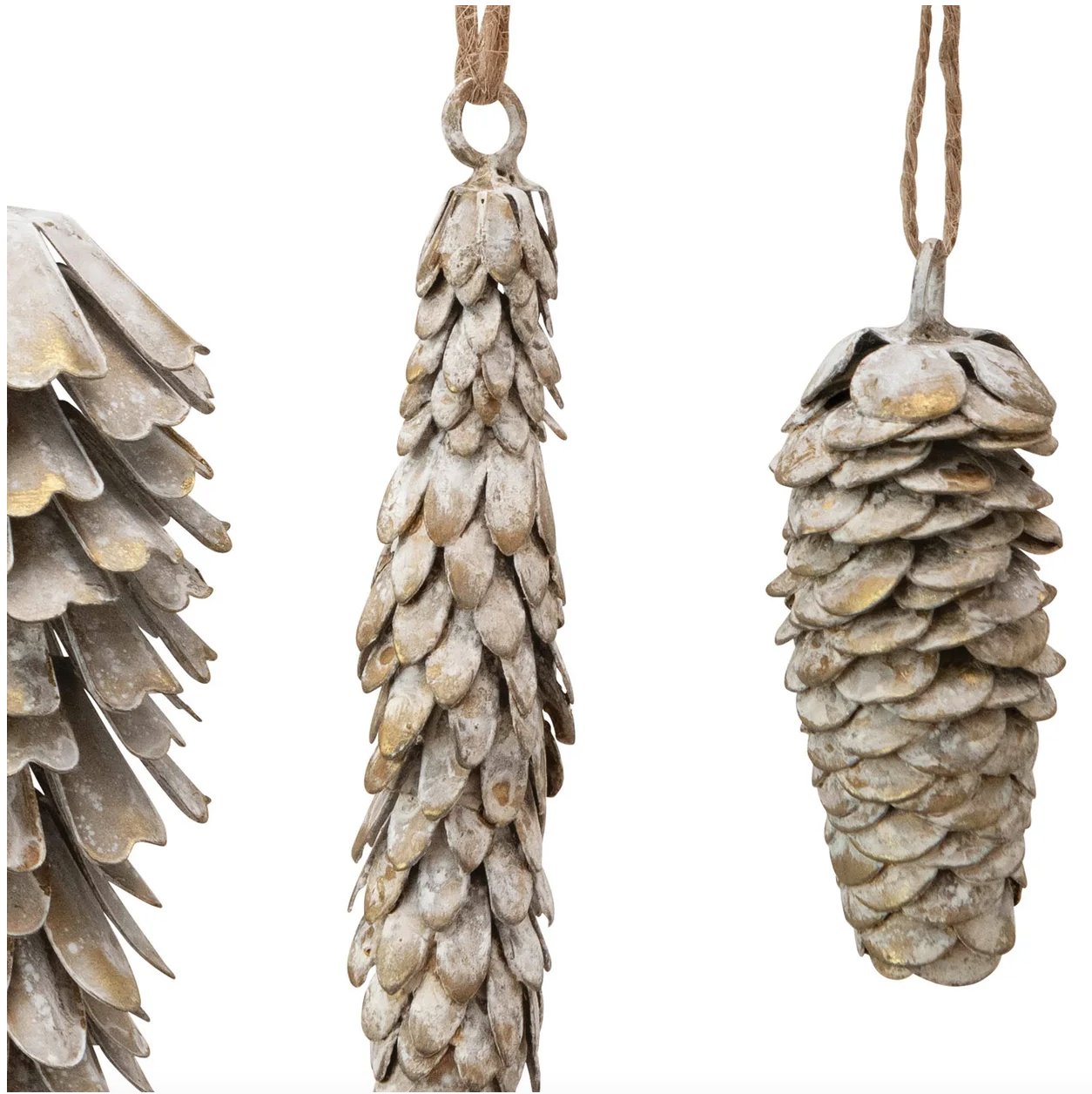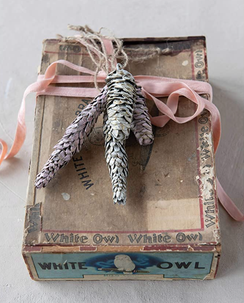 These ornaments are a beautiful addition to any home during the Christmas season. Made out of metal, these pinecone ornaments come in 3 festive styles with a vintage white finish. These are perfect for any nature-inspired festive home, and make decorating with friends and family fun.