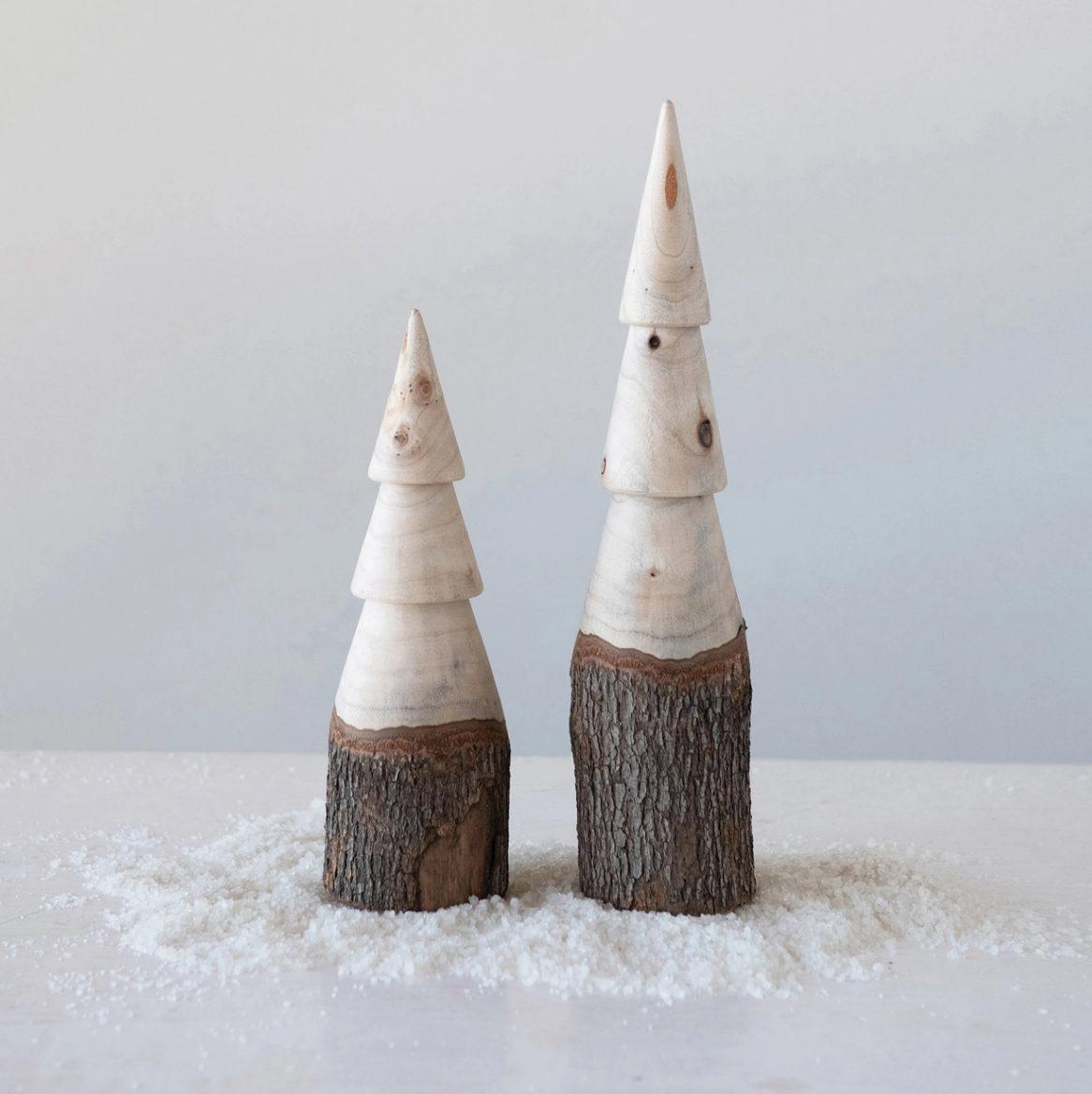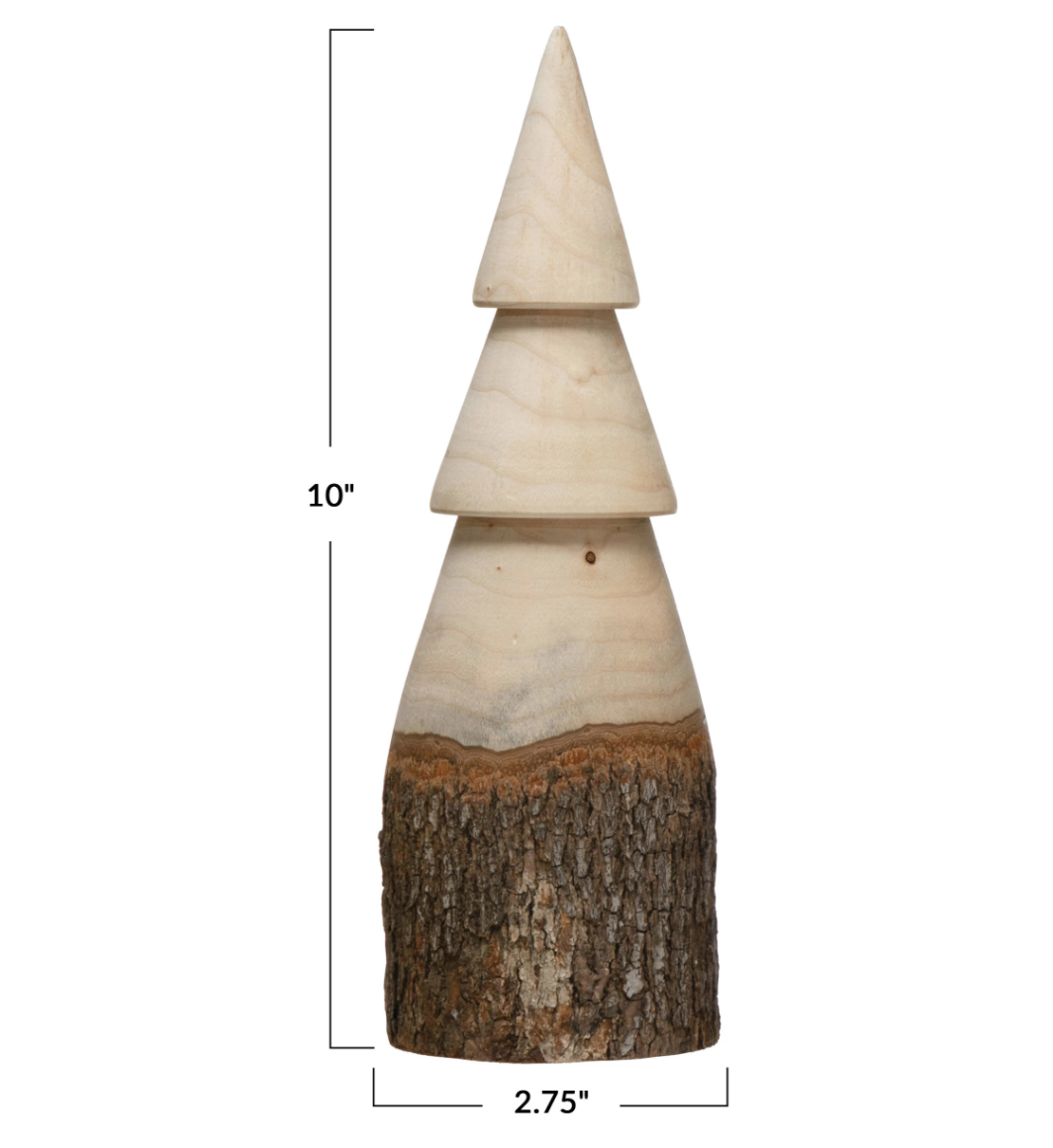 This festive tree is an easy and classic way to decorate for the holiday season. Made out of carved wood, this tree has a bark base, and has a natural finish. Whether used as a stand alone or in a bundle, this tree instantly upgrades any table tops or shelves and blends with any decor styles.