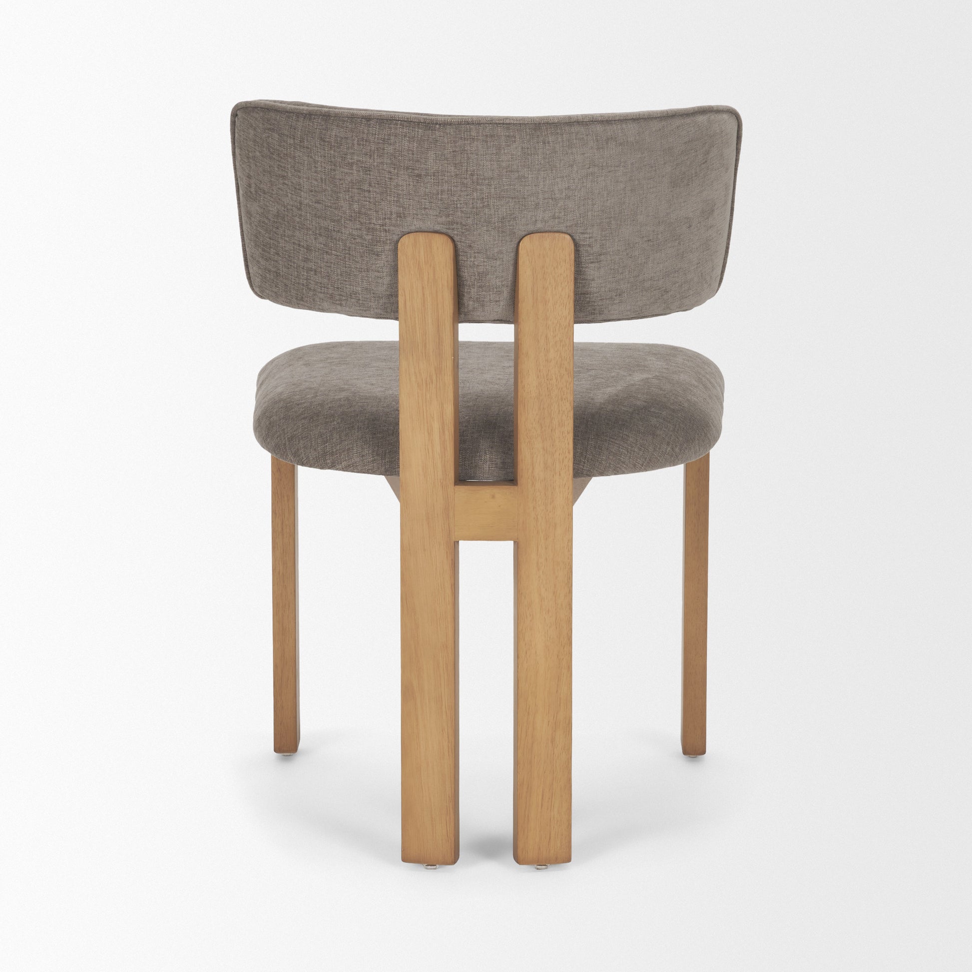 The Soho Dining Chair blends bold geometry with sculptural refinement, featuring a double-beam open back and a tripod-style frame in warm, kiln-dried solid rubberwood. Upholstered in a soft, high-performance gray fabric with recycled content, this piece offers everyday durability and modern sophistication in one thoughtful design.