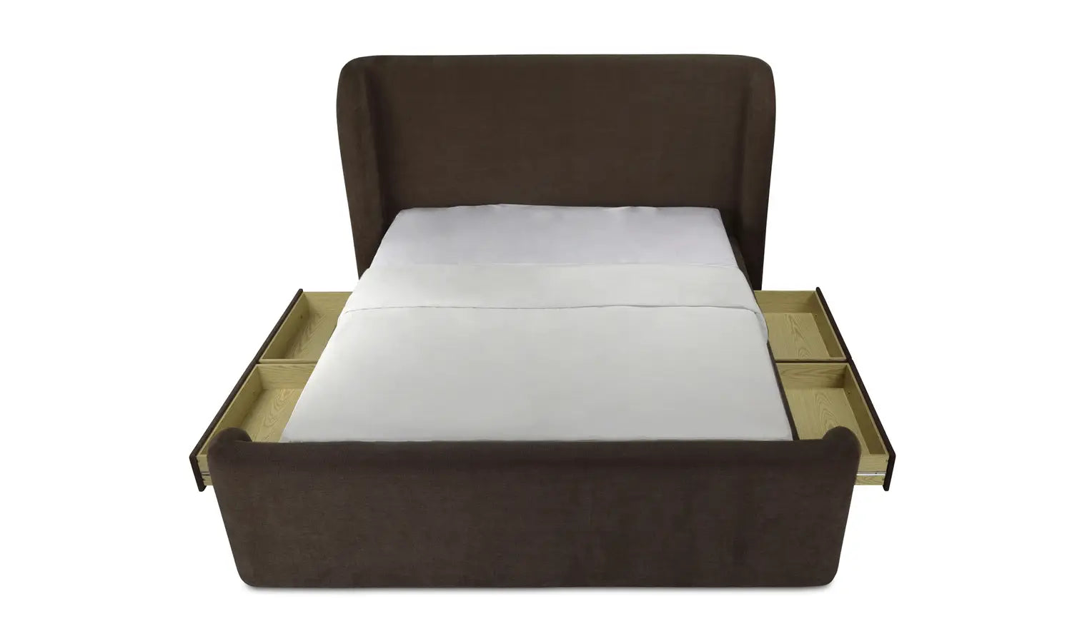 The Sophia bed envelops with unparalleled comfort, featuring both a headboard and a footboard crafted to create a cozy sanctuary. At the same time, the inclusion of additional drawers offers ample storage without sacrificing style. This bed reshapes the sleep experience, combining comfort, functionality, and elegance to create a place for rest and a destination for relaxation.