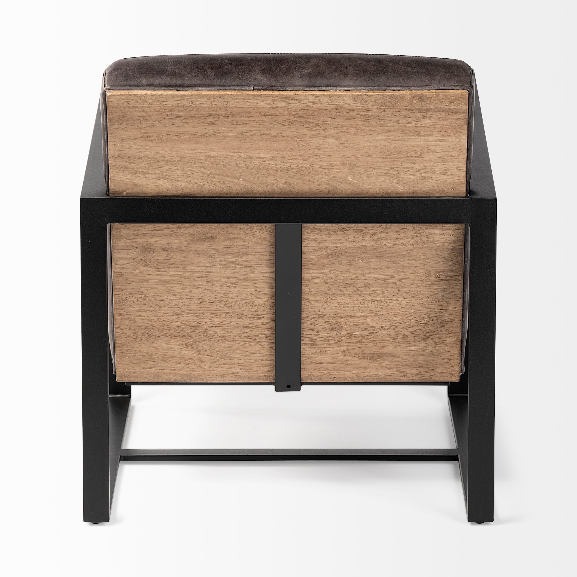 Stamford Black Genuine Leather Seat w/ Wood Back, Metal Frame Accent Chair