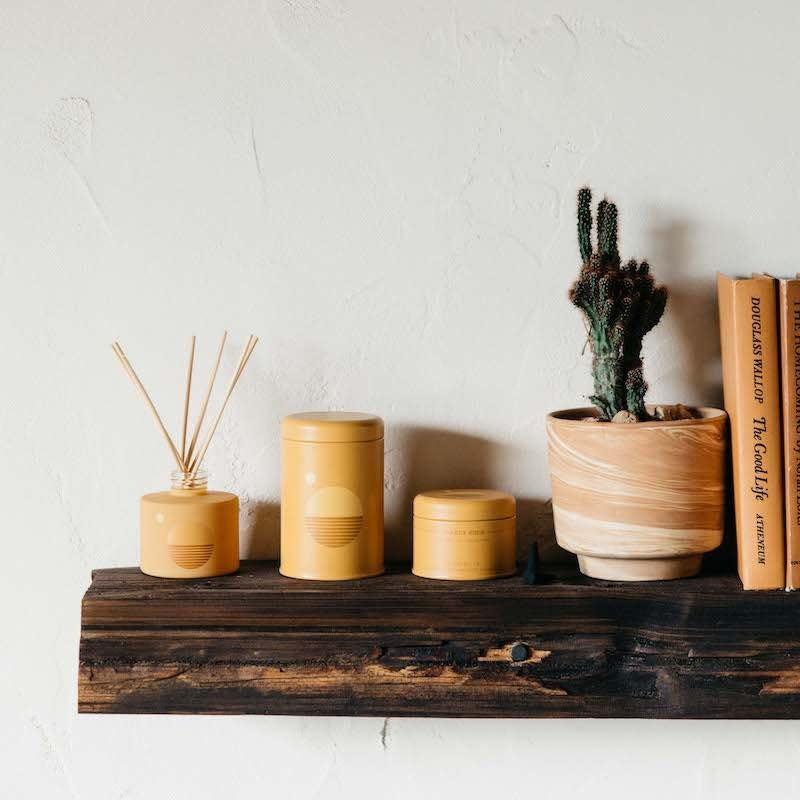 Sunset is a collection of candles, reed diffusers, and incense cones in 4 original scents. The unique designs are inspired by our love for the 70s, while the fragrances capture our favorite times of day in California.