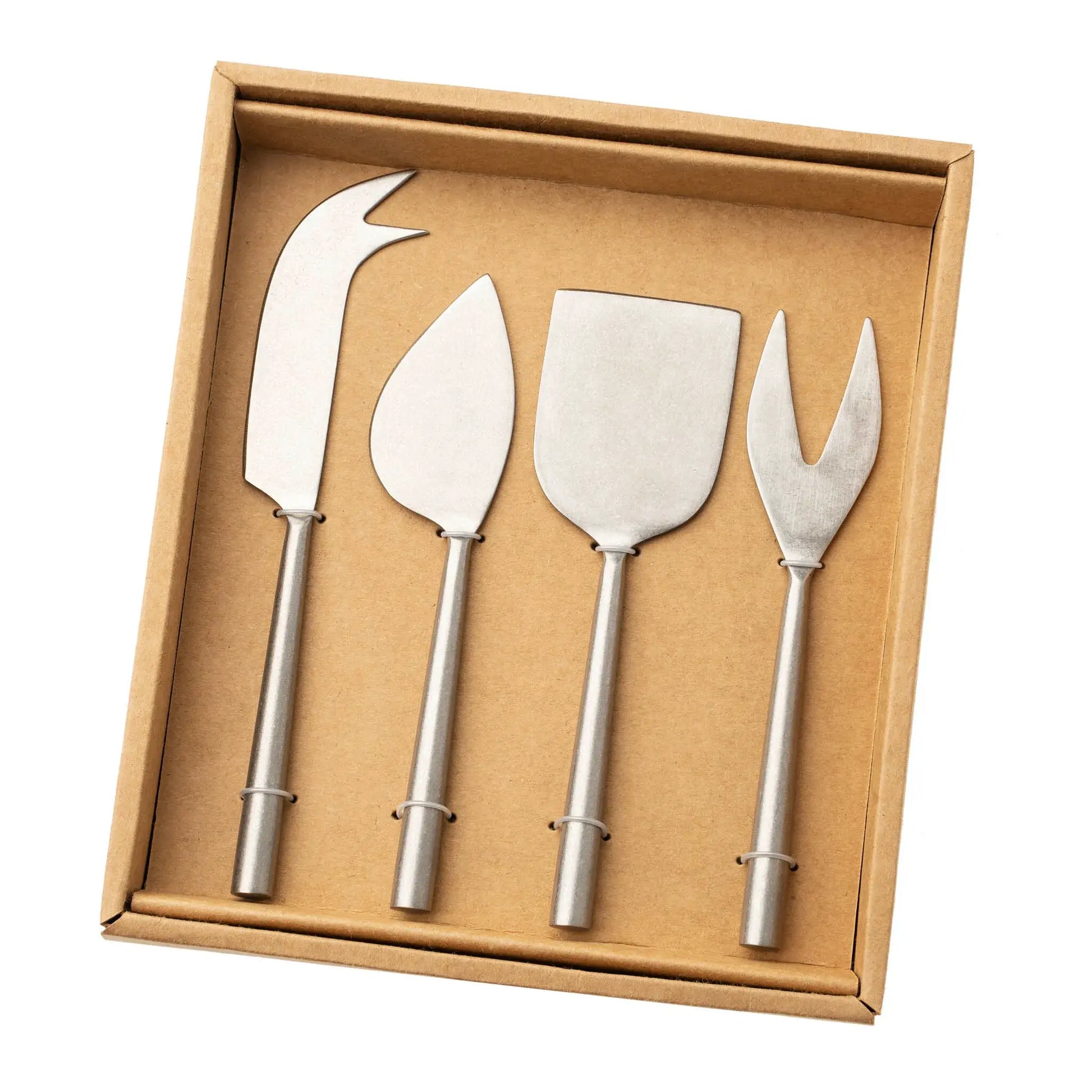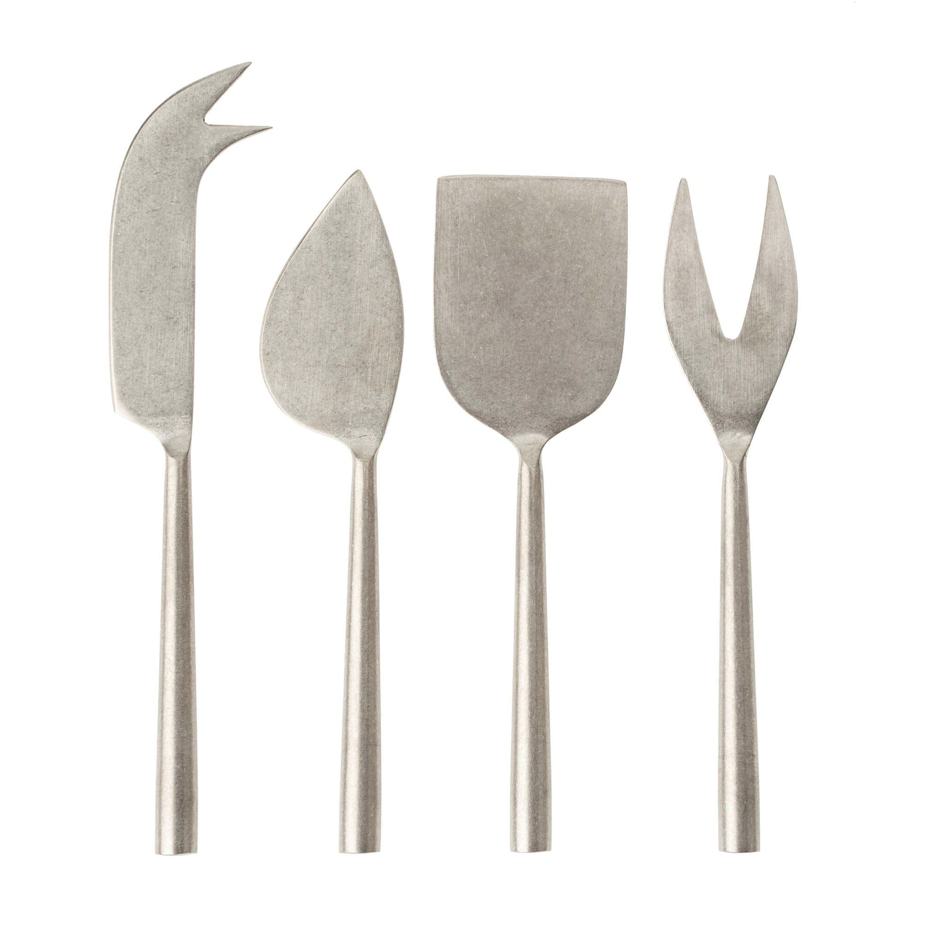 Hand forged in Moradabad, a city in India known for metal craftsmanship, our Tides Cheese Knives are a testament to timeless quality. Hand-forged from stainless steel, these servers boast a distinctive distressed matte silver finish that proudly bears the authentic marks of their skilled makers. Elevate cheese plates and charcuterie plates with especially designed utensils. Each box includes a pronged cheese knife, spatula knife, flat cheese knife and cheese fork ranging in size from 6.25" to 7.5".