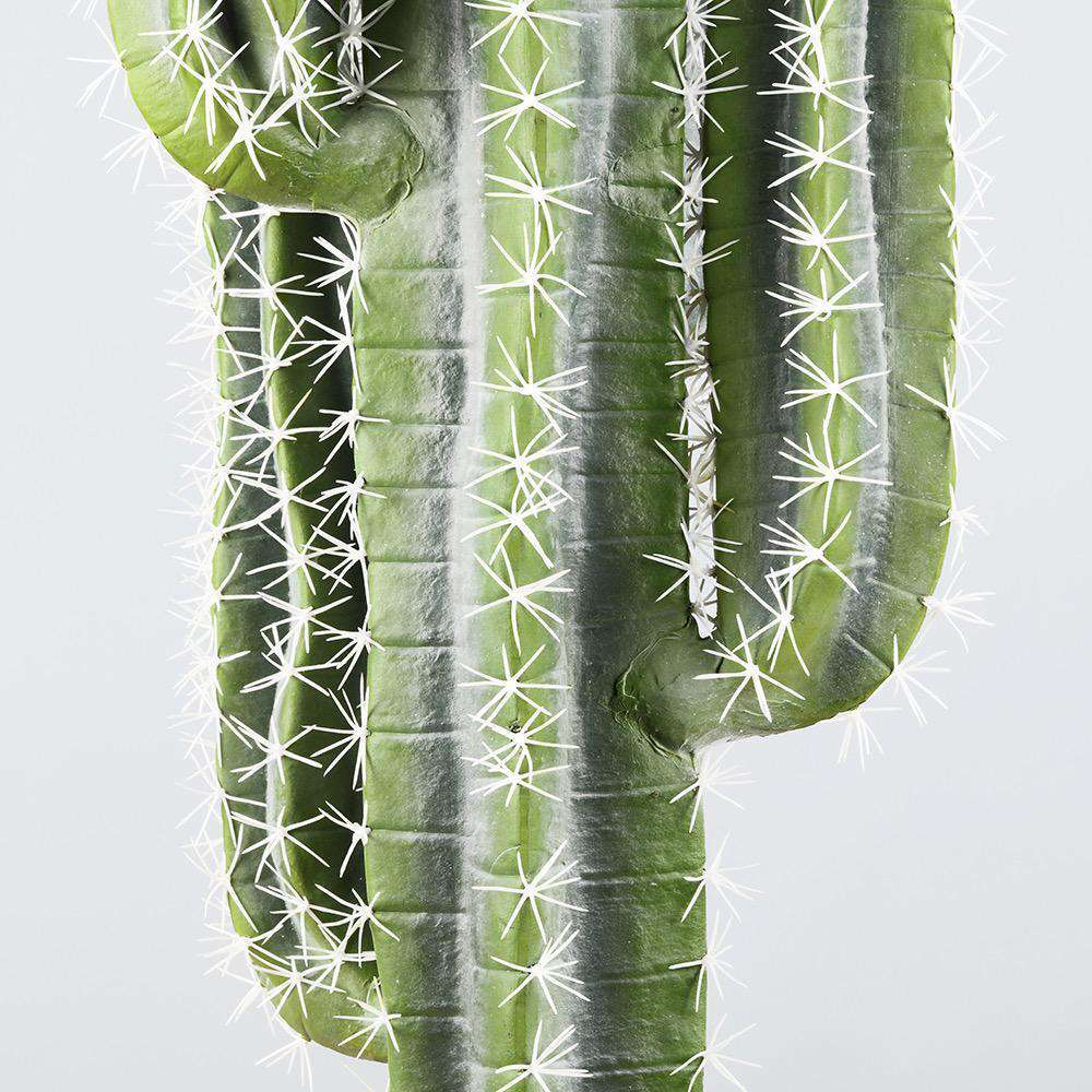 The beautifully prickly artificial cactus potted plant explodes with natural-looking charm. Bring a little of the desert back home with you. At 41 inches tall, extensive detail was paid to designing the cactus. The lightening of the tone towards the middle of the plant duplicates the same phenomenon from the desert. Placed in a concrete planter with elegant white river rocks, this artificial cactus potted plant certainly makes an impression.