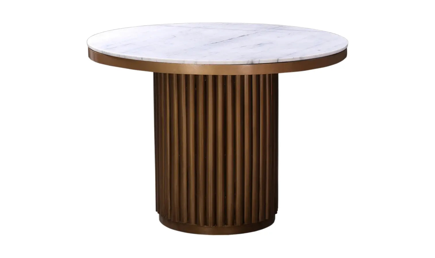 Inspired by Roman architecture, the Tower dining table features a brass-finished pillar base holding up a beautiful white marble top. This classic yet modern design, which seats two to four people, is a welcome addition to any contemporary home.