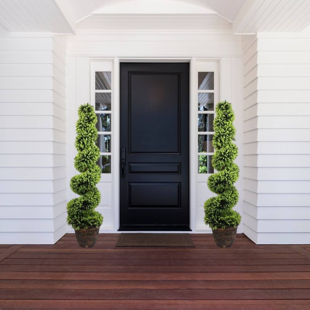 Wales Faux Potted Spiral Boxwood Topiary Plant (Multiple Sizes)